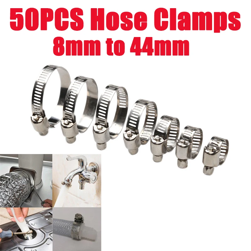 50 шт. зажимы для труб из нержавеющей стали Регулируемые зажимы для топливных труб зажимы для водяных шлангов зажимы для труб крепежный хомут для шланга 8 размеровХарактеристика:-100% новые и высококачественные.-Нержавеющая сталь, прочная, антиокислительная, устойчивая к коррозии.-Мощный крутящий момент, для высокопрочной трубки давления.-Красивый внешний вид, простая установка, хорошая ударопрочность, широко используется.-Сквозное отверстие для небольшого диапазона зажима и может быть повторно использовано.-Может быть крепление труб, газовых труб и т. Д., утечки газа водонепроницаемый, может использоваться в дождь.Характеристики:Название продукта: зажимы для труб из нержавеющей стали Материал: нержавеющая сталь Цвет: серебристый Размер: 8-12 мм, 10-16 мм, 13-19 мм, 16-25 мм, 18-22 мм, 19-29 мм, 25-38 мм, 32-44 ммПосылка включает:10 шт. зажимы для труб из нержавеющей стали