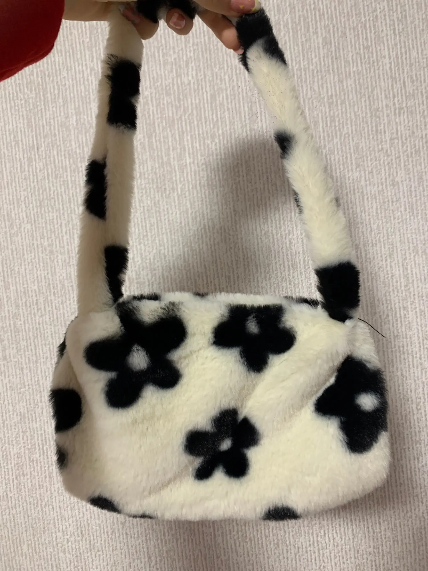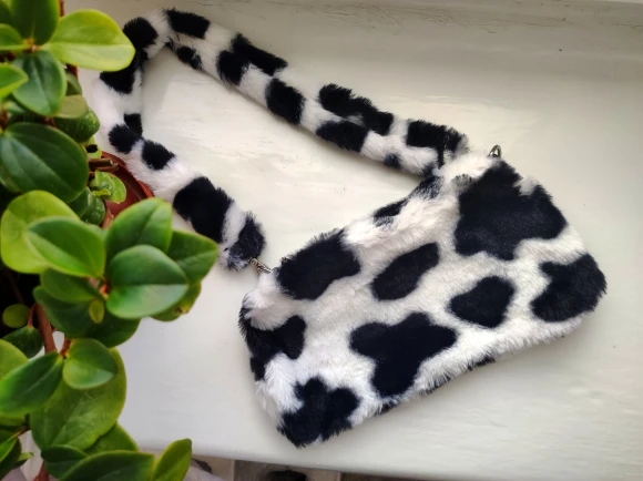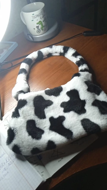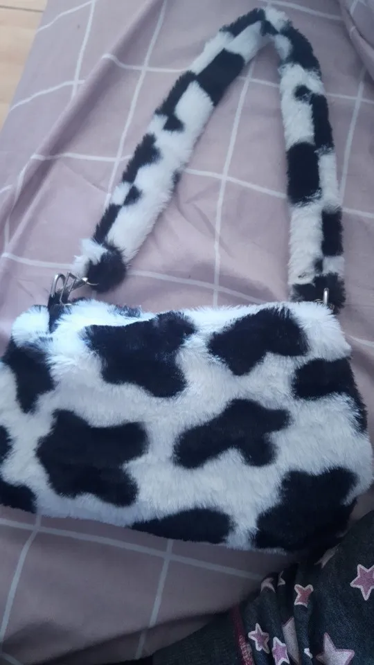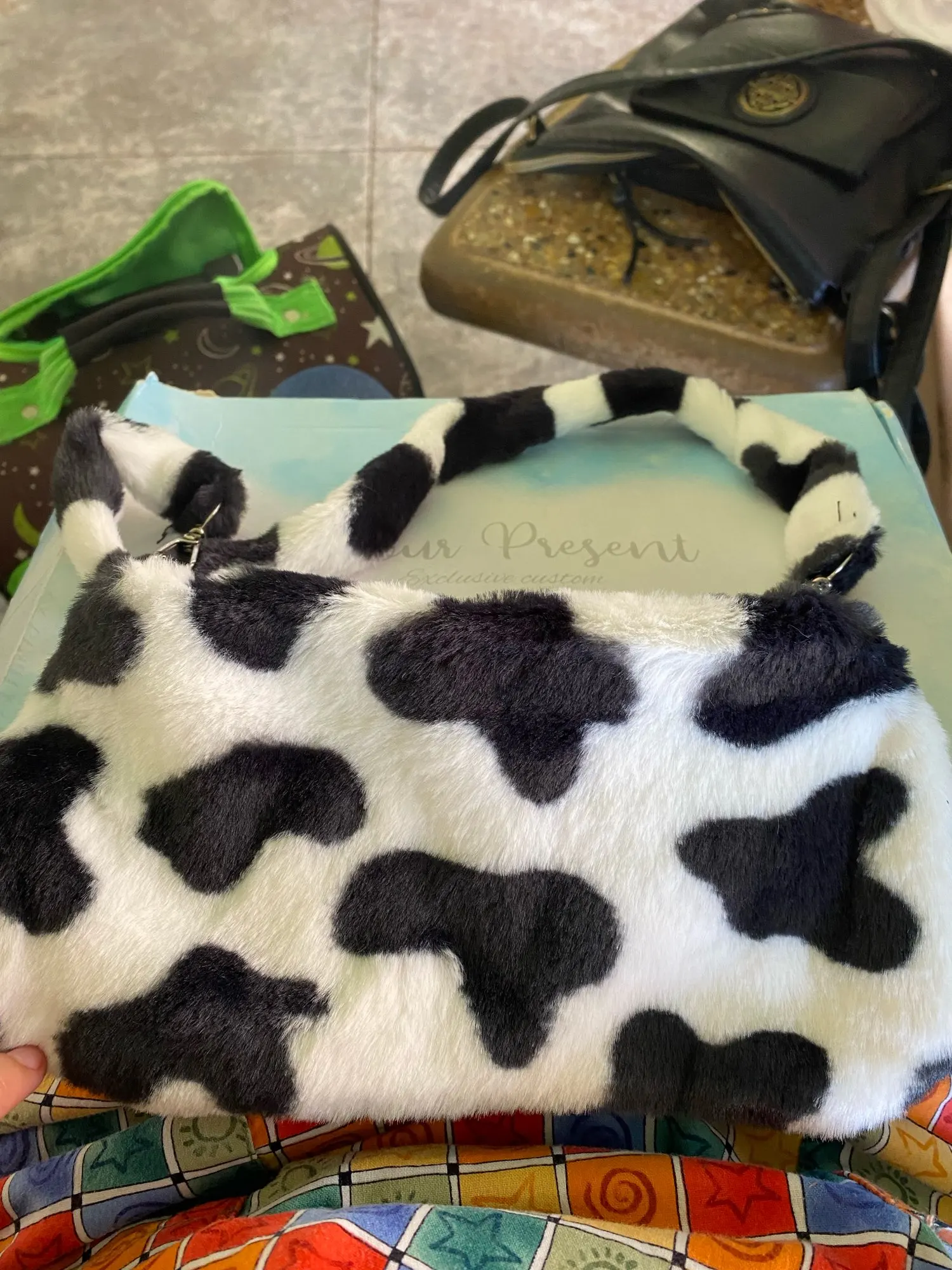 Сумка-тоут женская зимняя, с принтом в виде коровьей кожи