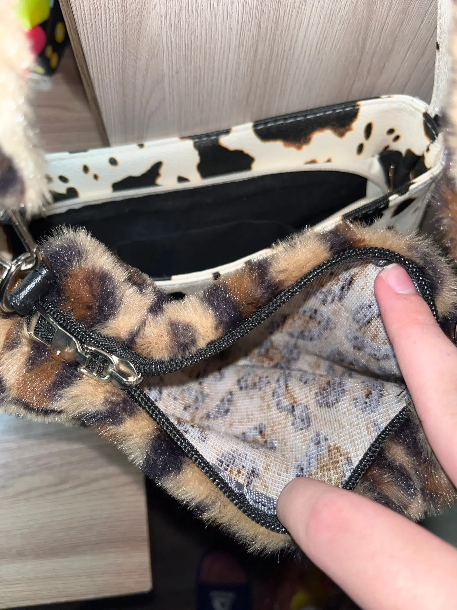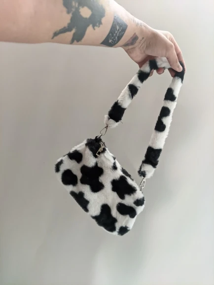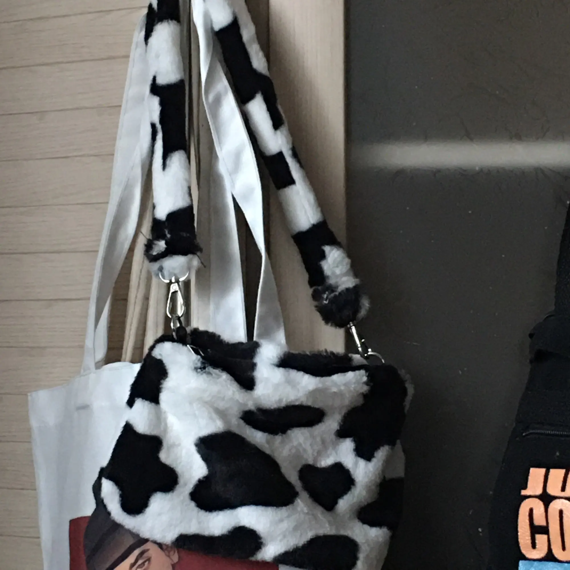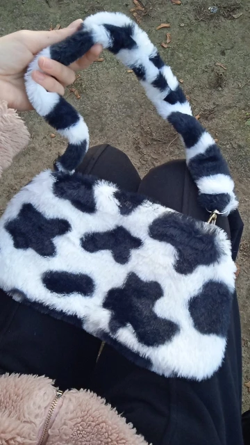 Сумка-тоут женская зимняя, с принтом в виде коровьей кожи