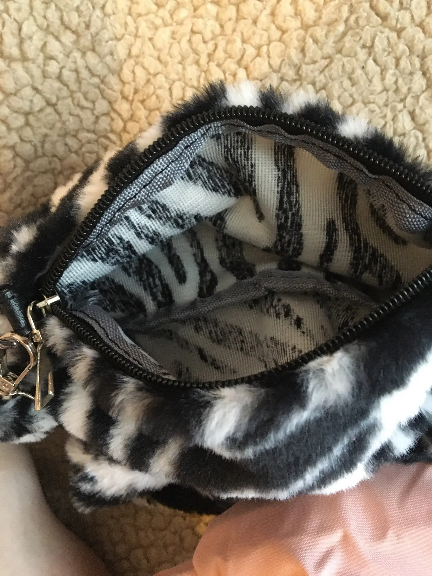 Восхитительный кошелек! Очень мягкий и мне нравится принт. Он намного меньше, чем я думал, что он будет, но он все еще милый независимо от того, Я бы хотел, чтобы внутри была подкладка, но это нормально, внутренняя часть имеет мягкое прикосновение