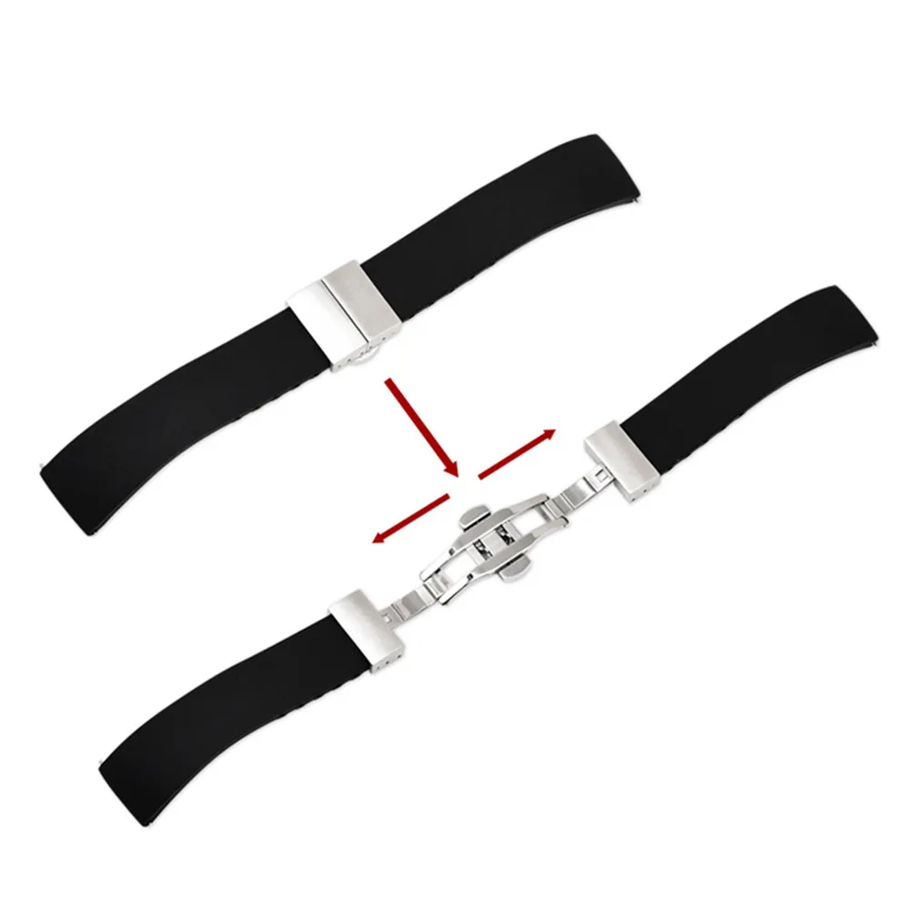 Ремешок силиконовый для наручных часов, спортивный быстросъемный браслет с двойным нажатием бабочки, 14 мм 16 мм 18 мм 20 мм 22 мм 24 мм