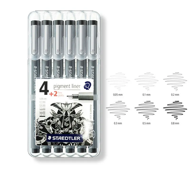 Пигментный лайнер Staedtler 308, гелевая ручка, игольчатая ручка, эскиз 0,050,10,20,30,40,50,60,70,81,0 мм, для рисования и письма