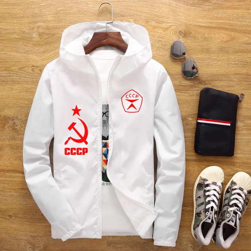 Куртка мужская с принтом СССР, брендовая уличная ветровка, худи, тонкая куртка-бомбер на молнии, Повседневная азиатская 7XL