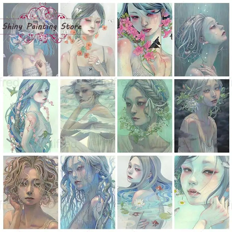 Алмазная 5D картина с красивой девушкой и цветами, сделай сам, вышивка с синими стразами, иллюстрация с красивым комиксом, вышивка крестиком, подарок ручной работы