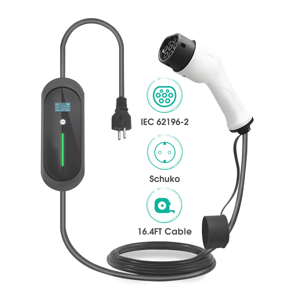 Зарядное устройство для электромобилей, тип 2, МЭК 62196, однофазное, 16 А, с европейской вилкой, портативное, для дома, для электромобиля