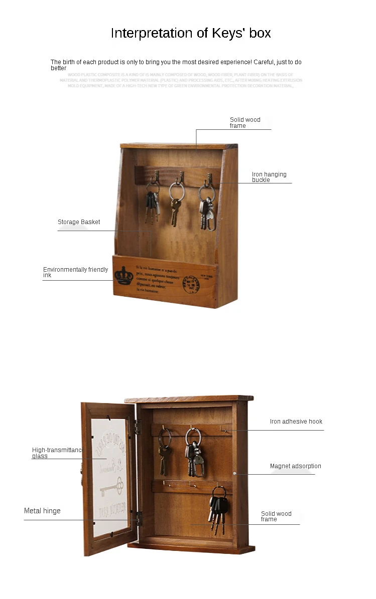 Деревянная коробка для хранения ключей в винтажном европейском стил...