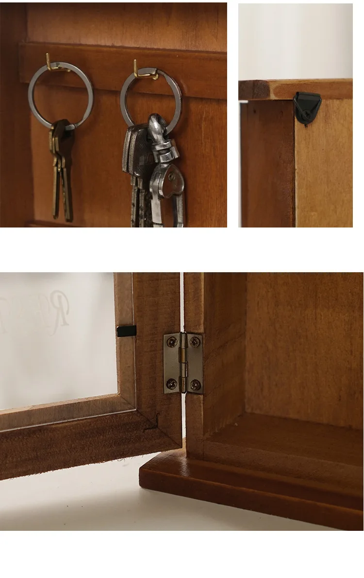 Настенные деревянные Висячие Крючки для ключей, декоративный органайзер для хранения, ретро-почтовый ящик, домашний декор, полка для мелких предметов