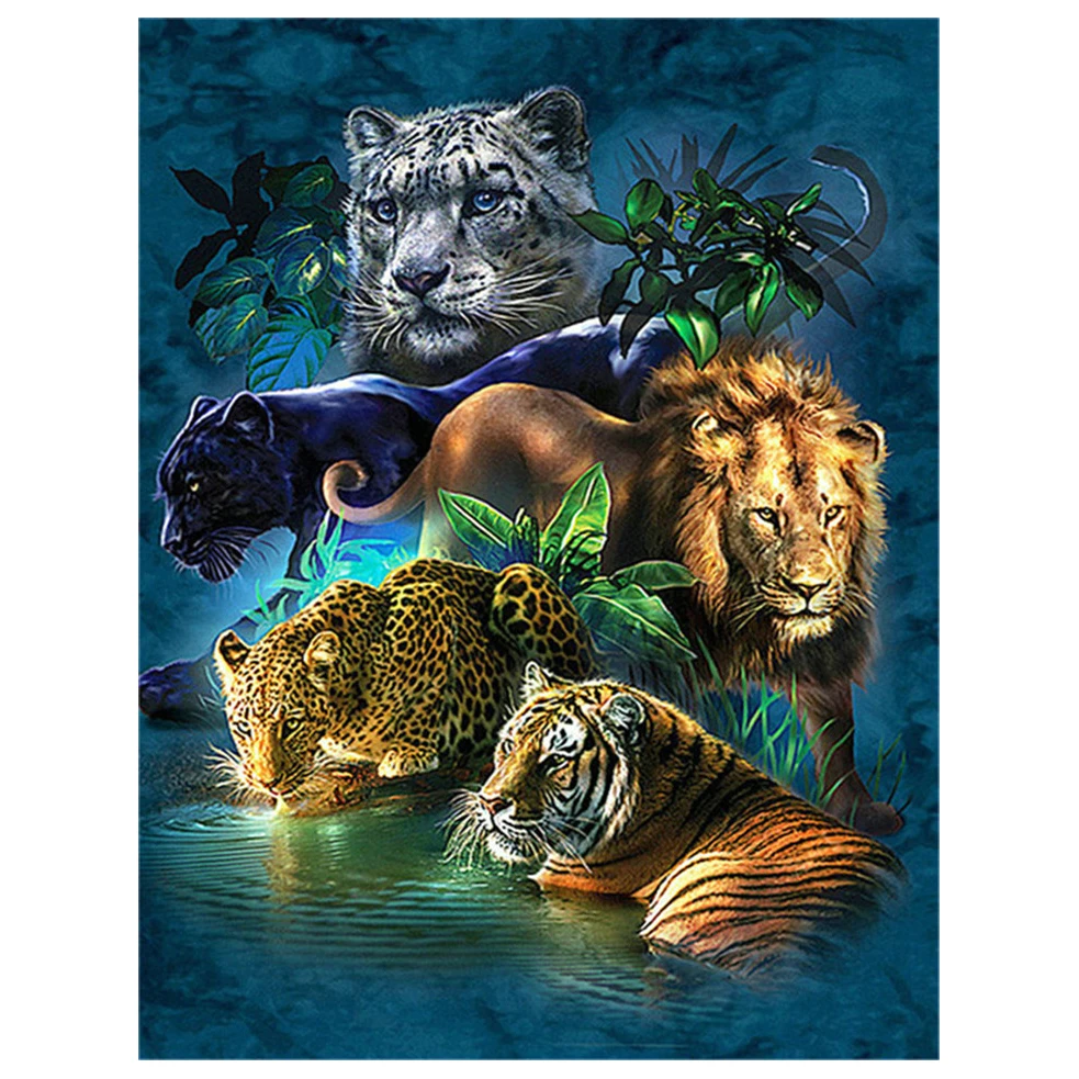 Полный квадратный алмаз 5D DIY Алмазная картина "Тигр, лев, леопард...