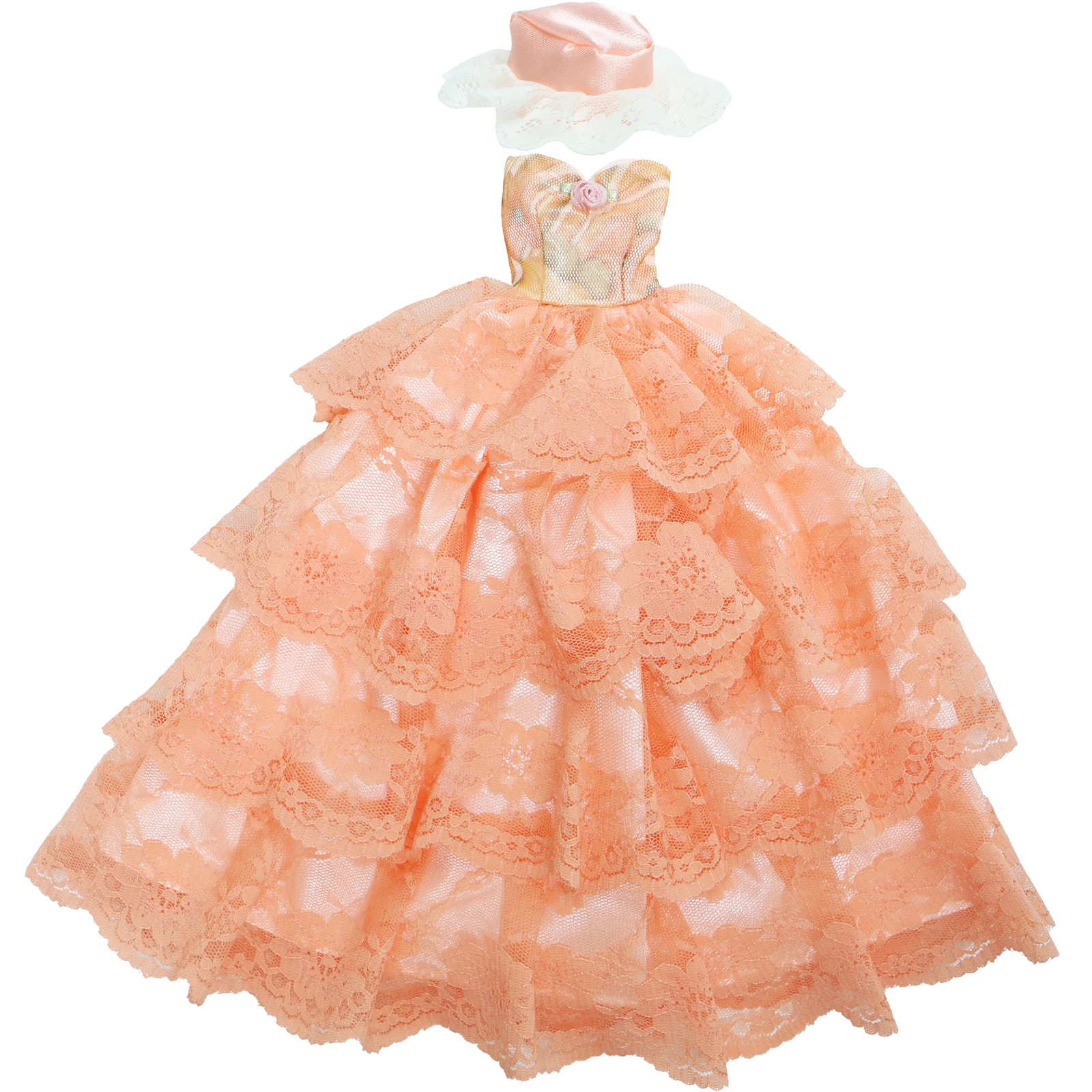 Модная оранжевая многослойная юбка, элегантное женское платье, шапка, наряд, платье, танцевальвечерние, аксессуары для куклы Барби, одежда, игрушка