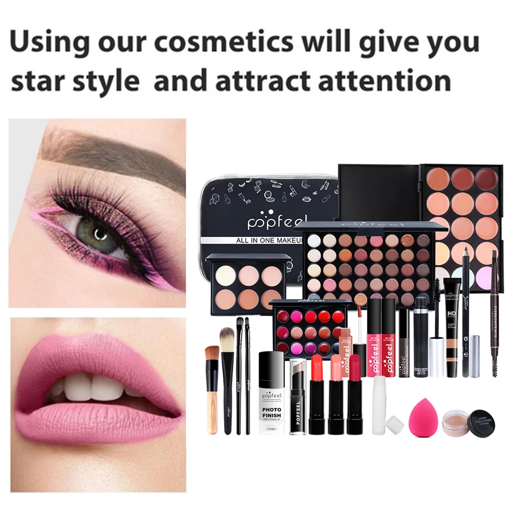 24 шт. набор для макияжа матовая губная помада Профессиональная палитра теней для век Тушь для ресниц подарок с косметичкой дорожная портативная долговечная