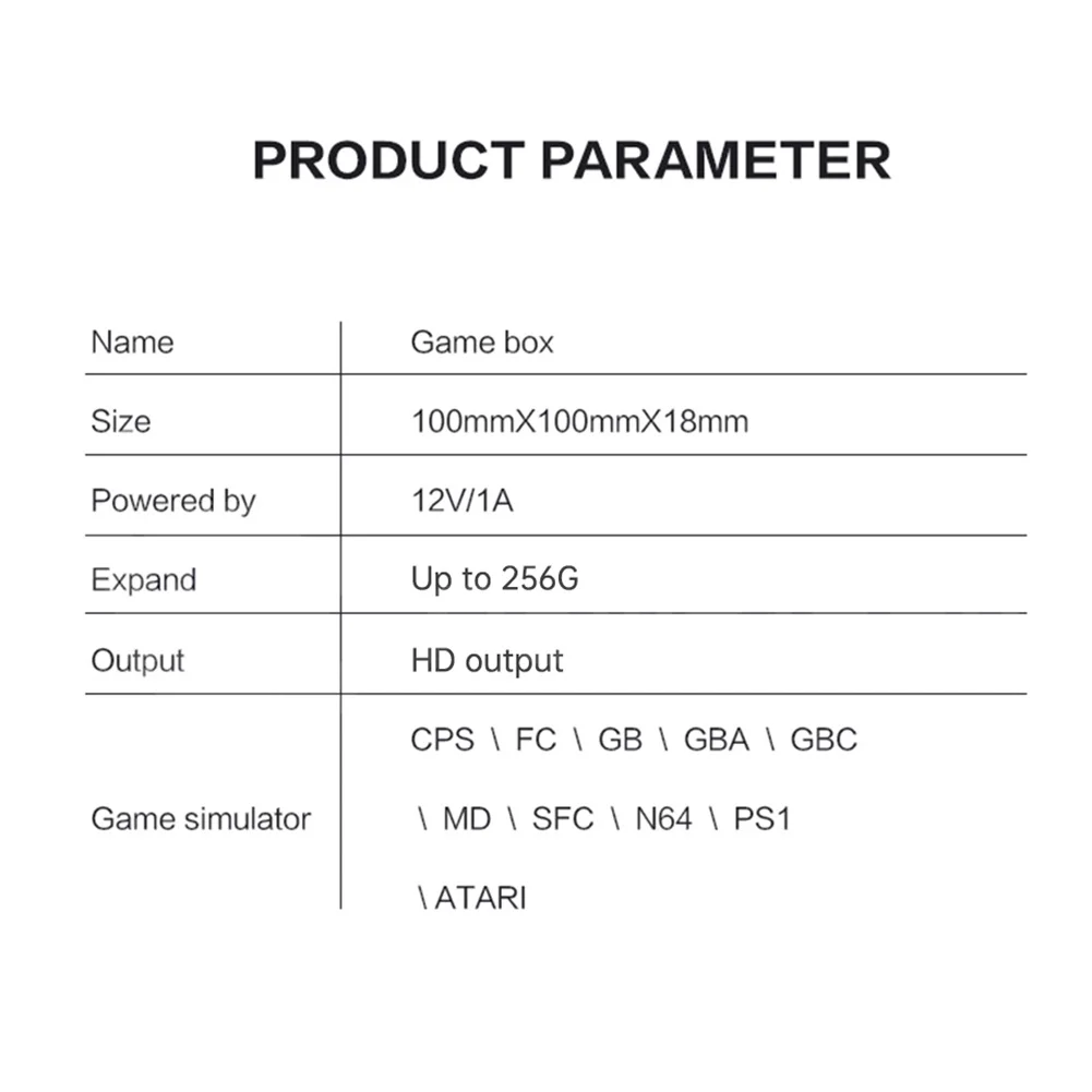 Powkiddy G5 S905L мини игровая приставка эмулятор 10000/15000 + игры WiFi Ретро ТВ приставка Видео игровой плеер с проводными/беспроводными контроллерамиСпецификация:ЦП: S905LПамять: 1G оперативная память + 8G памятьИнтерфейс контроллера: проводной контроллер, беспроводной контроллерИнтерфейс: USB * 2, RJ45 * 1, HDMI-совместимость * 1, TF * 1, AV * 1, DC * 1Количество игр: 64 ГБ (1 Вт), 128 г (1,5 W)Поддержка языков: упрощенный китайский, традиционный китайский, английскийПоддержка игр: CPS, FC, GB, GBA, GBC, MD, SFC, FC; N64; PS1; ATARI Arcade GamesПитание: 12V/1AПоддержка расширения: расширение tf-карты, до 256 ГБВидеовыход: HD выходРазмер: 100X100X18 ммАдаптер штепсельной вилки: ЕС/СШАПримечание:1. Из-за различных настроек монитора и светильник эффект, фактический цвет элемента может быть s светильник ly отличается от цвета, представленного на снимках. Спасибо!2. Возможны отклонения в 1-3 мм вследствие измерений вручную.