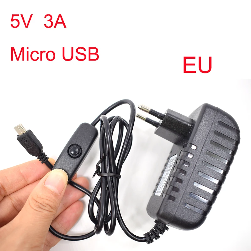 AC 100-240V DC 5 V 3A блок питания Кнопка питания адаптер зарядное устройство Micro USB порт 5 V Вольт для Raspberry Pi 3 Model B + plus