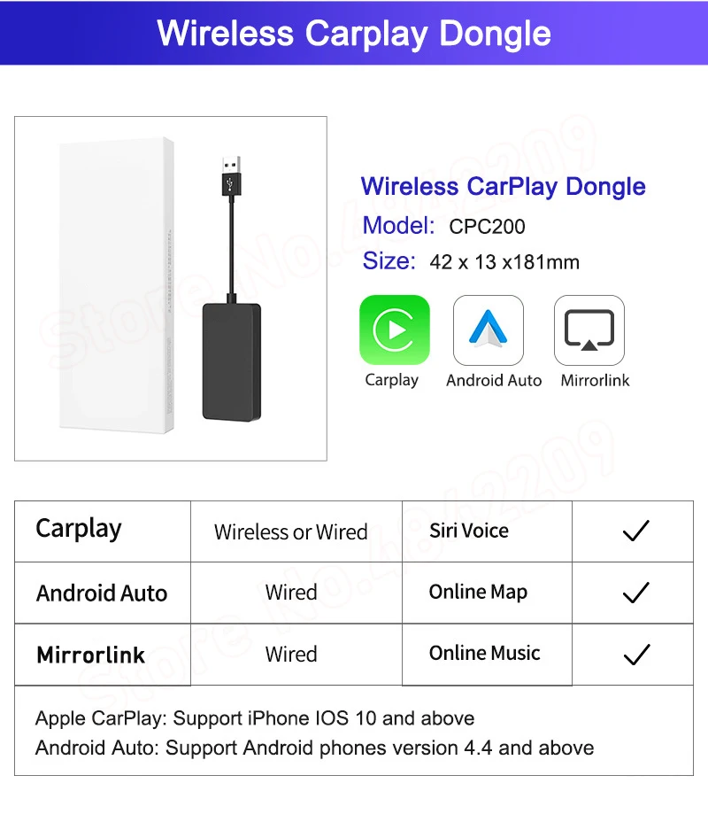 Беспроводной адаптер CarPlay с интерфейсом Android на USB, активирующий адаптер, декодер для BMW, Benz, Audi, Toyota, Volkswagen, Ford, Honda