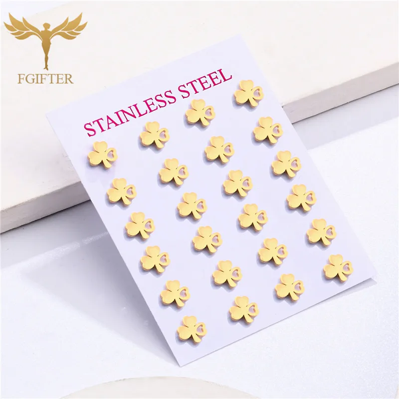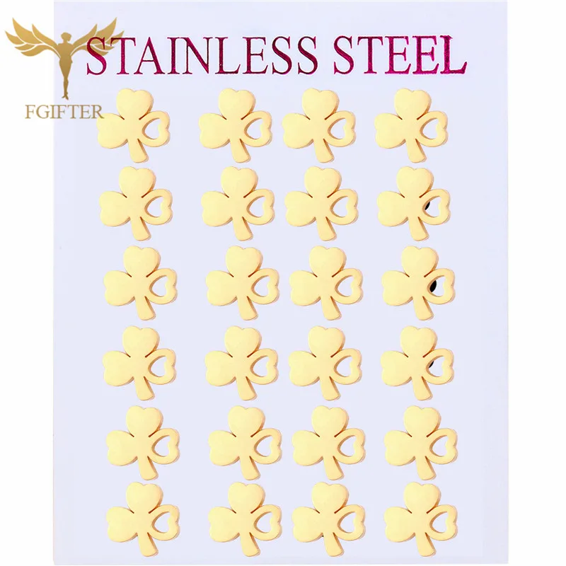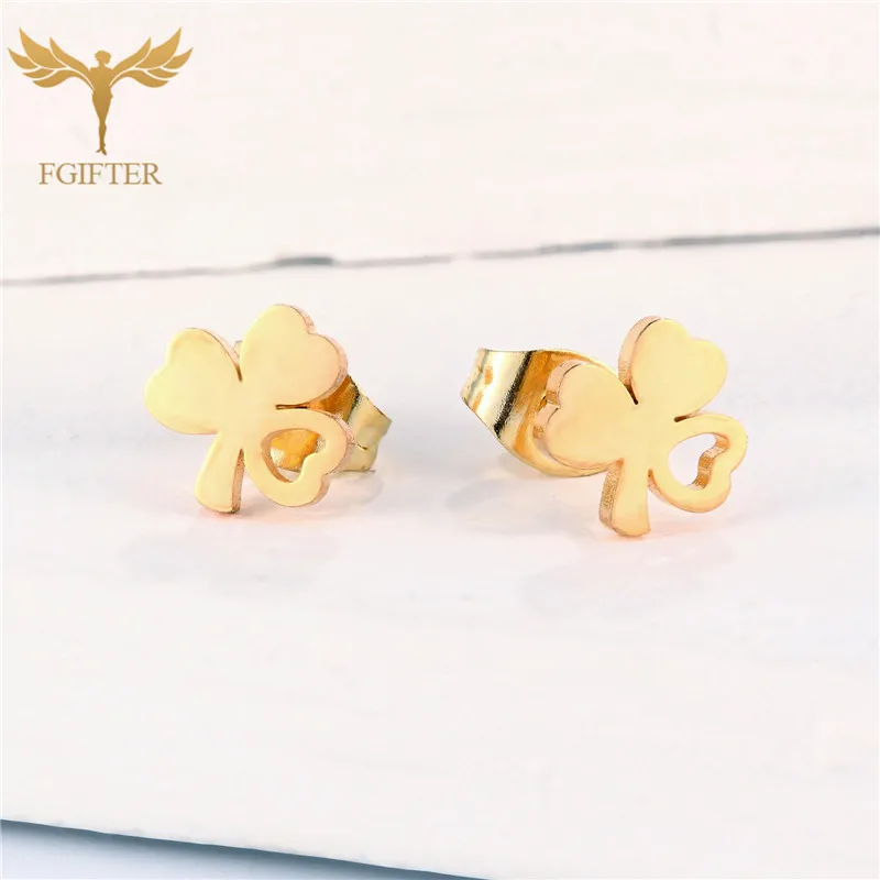 Серьги-гвоздики женские из нержавеющей стали, в форме клевера