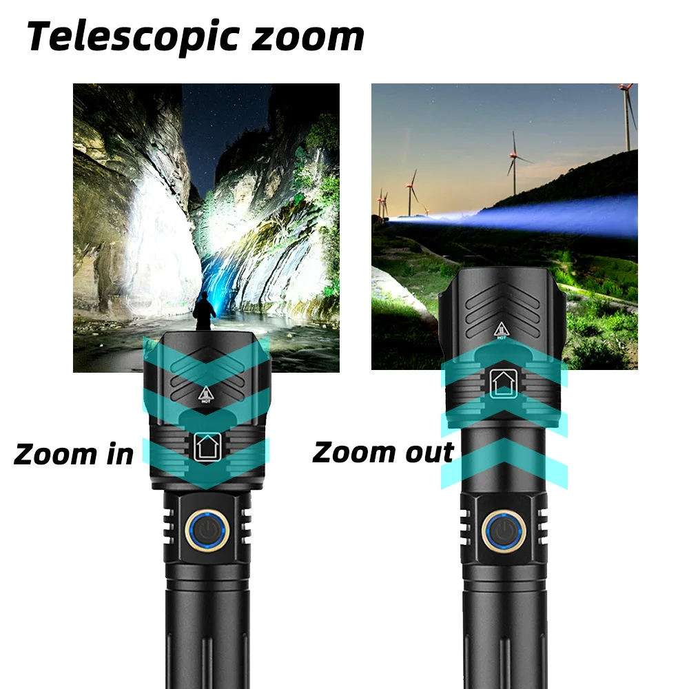 5. Дисплей емкости аккумулятора, Micro usb для компьютера, USB для автомобиля, USB разъем для зарядки, зарядный фонарик. Фонарик TypeB/C также включает функцию выхода USB, вы можете зарядить свое Развлекательное Оборудование