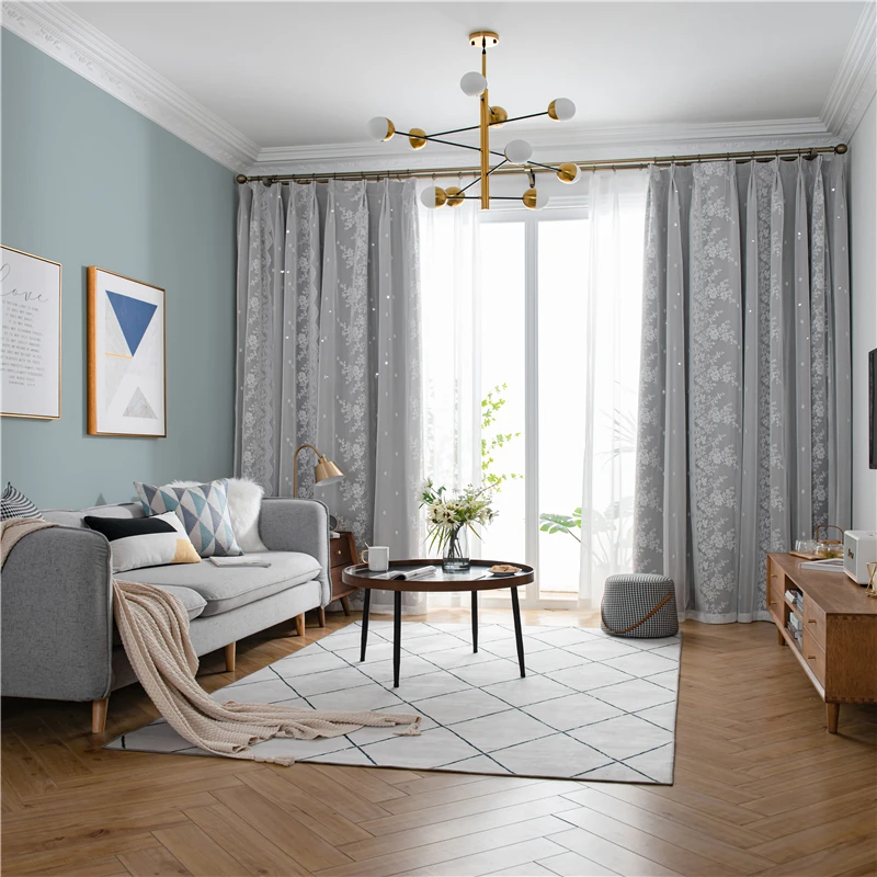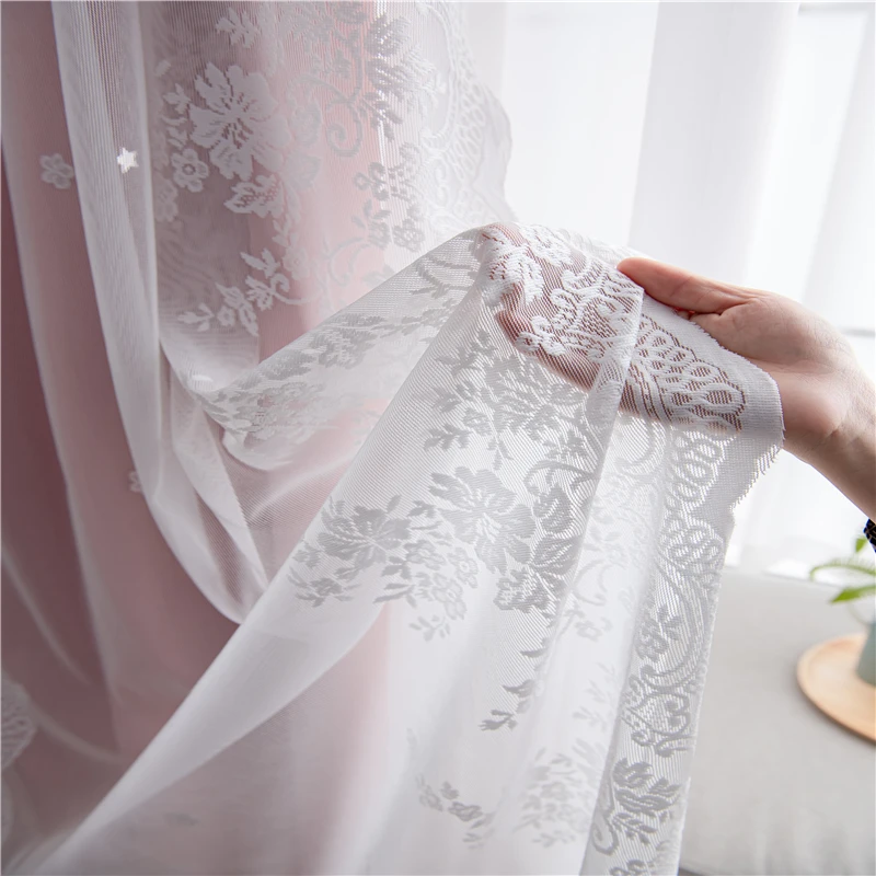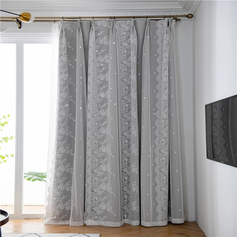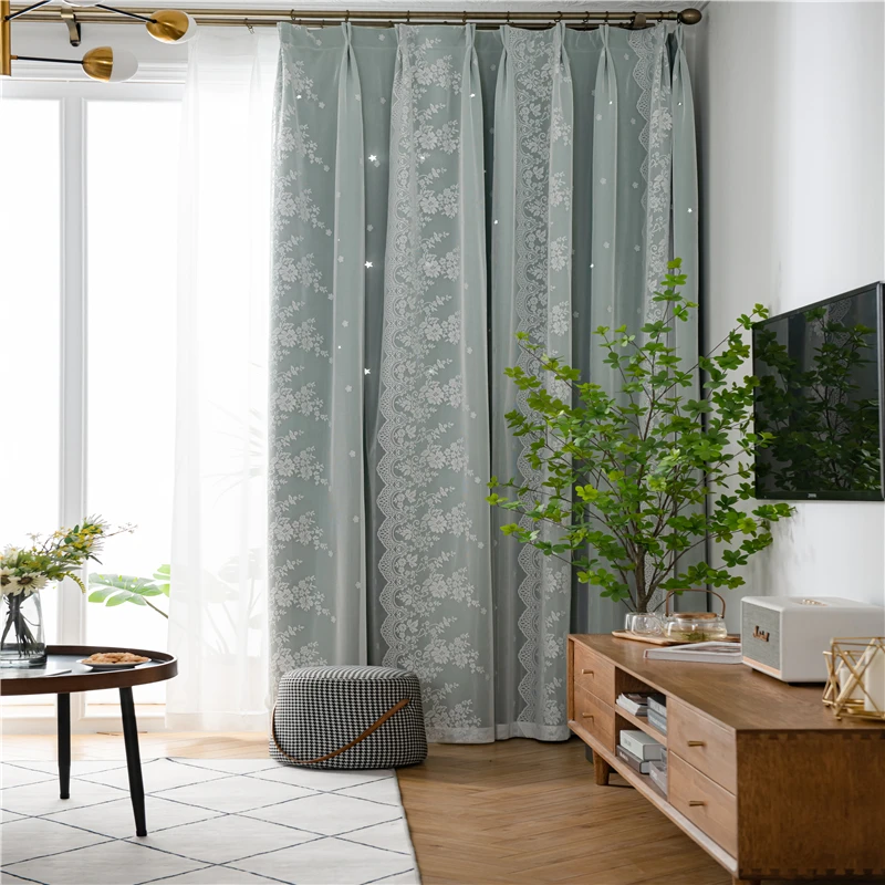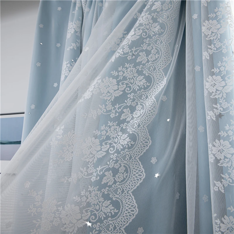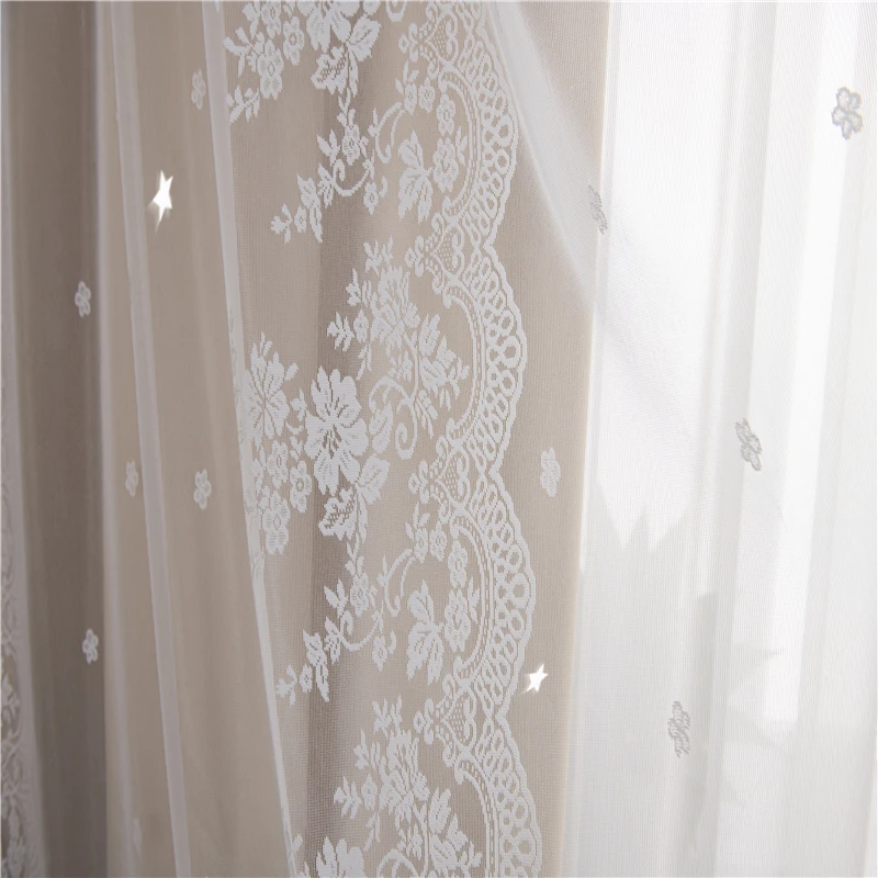 Двойные полые Звездные затемняющие шторы для гостиной девочки ребенка спальни окна кухни розовые занавески с белым кружевом Тюль