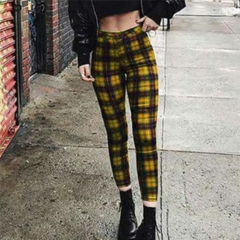 Женские уличные клетчатые брюки 2020 Harajuku с высокой талией, спортивные штаны в Корейском стиле, женские осенние брюки размера плюс