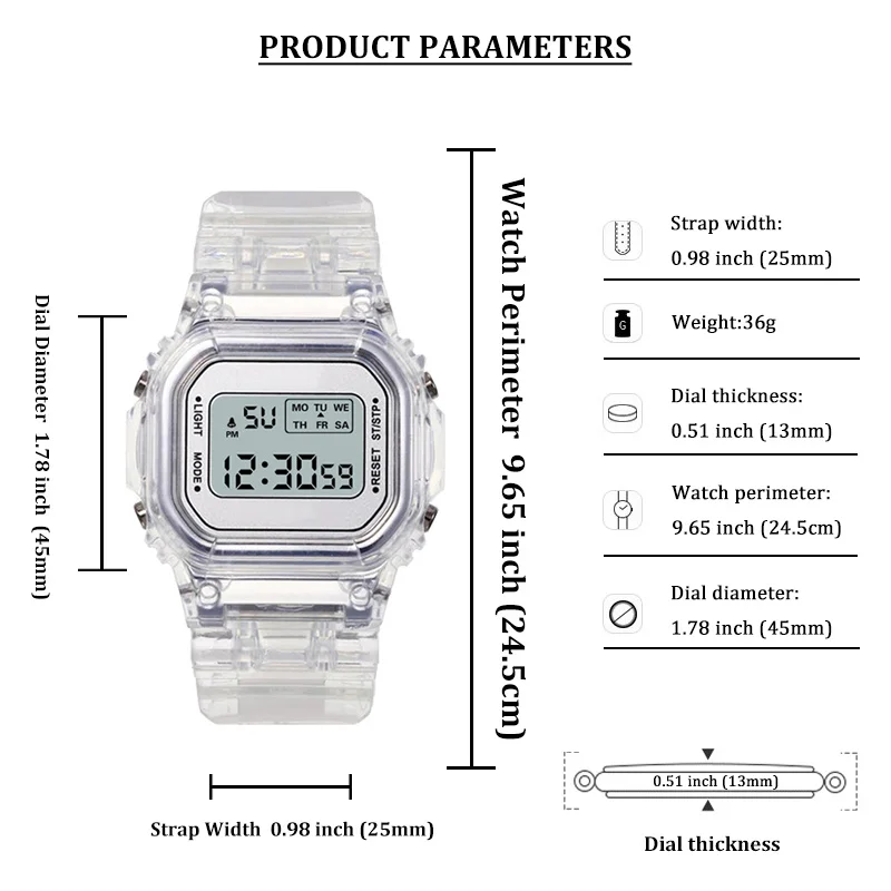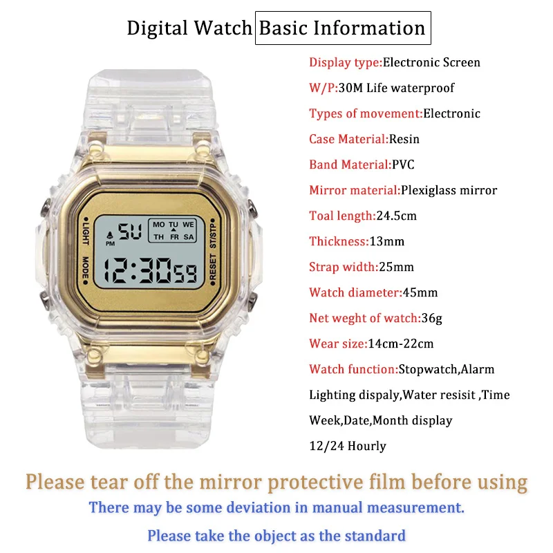 Часы наручные для мужчин и женщин, модные повседневные Прозрачные Цифровые Спортивные, подарок любимым