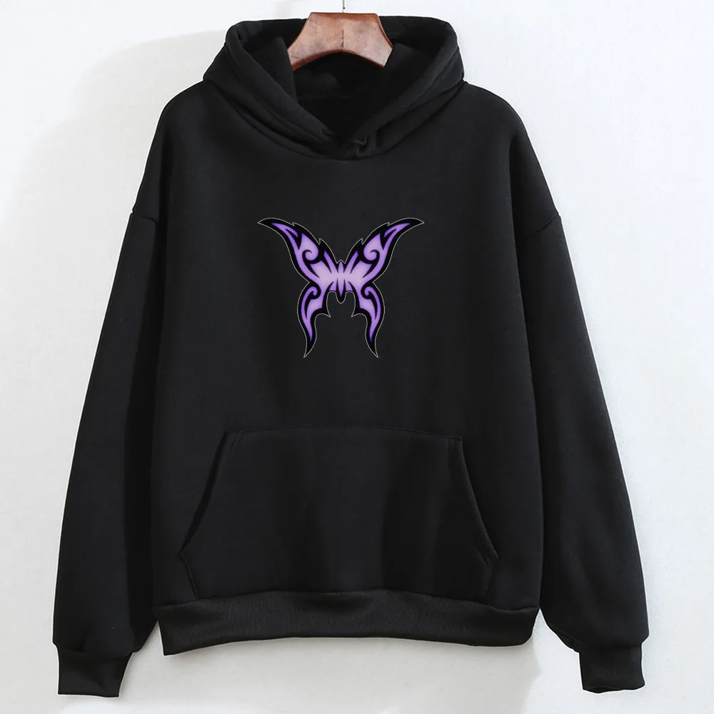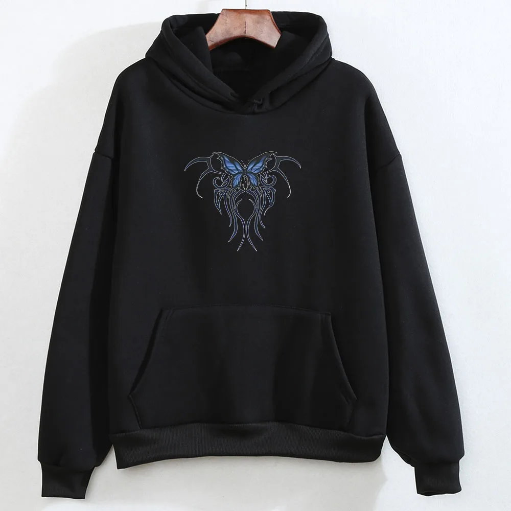 Пуловеры с длинным рукавом и принтом, толстовка большого размера d в стиле Харадзюку, Свитшот женский, винтажная зимняя уличная одежда Y2k, черные топы