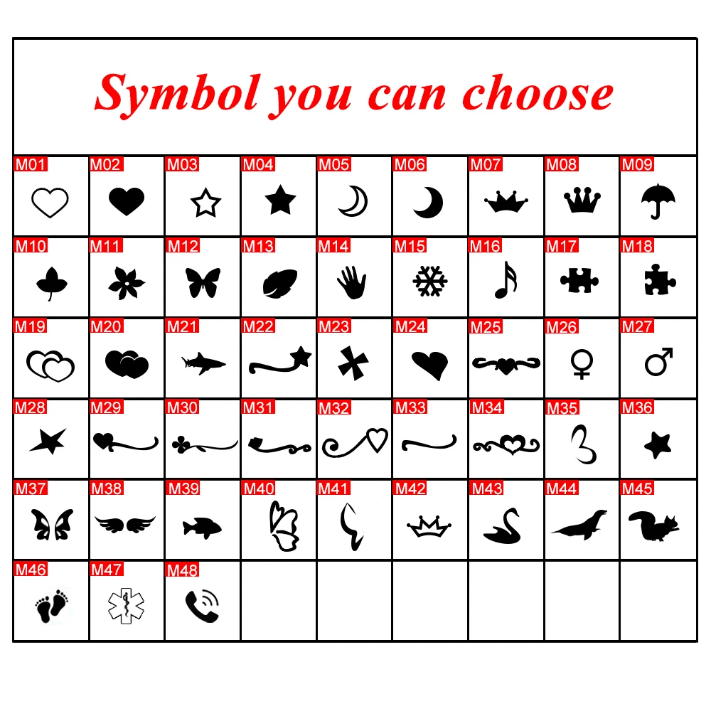 Внимание: друг, после того, как вы разместите заказ, пожалуйста, пришлите нам названия, которые вы хотите настроить. Если нет, мы вышлем чистое кольцо.