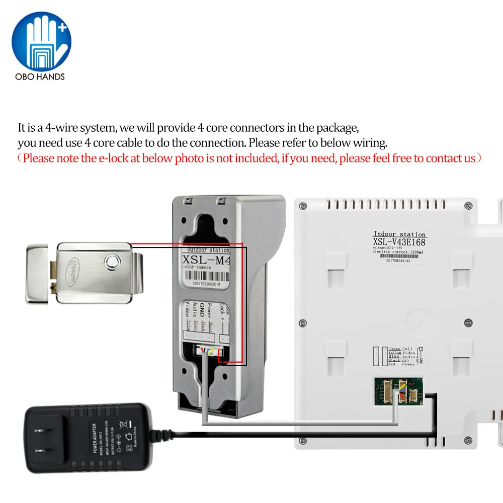 Если вы хотите установить Электрический магнитный замок, strike lock, bolt lock на камеру, нужно купить источник питания DC12V. (Оба источника питания, замки, кнопка выхода двери не включены в посылка)