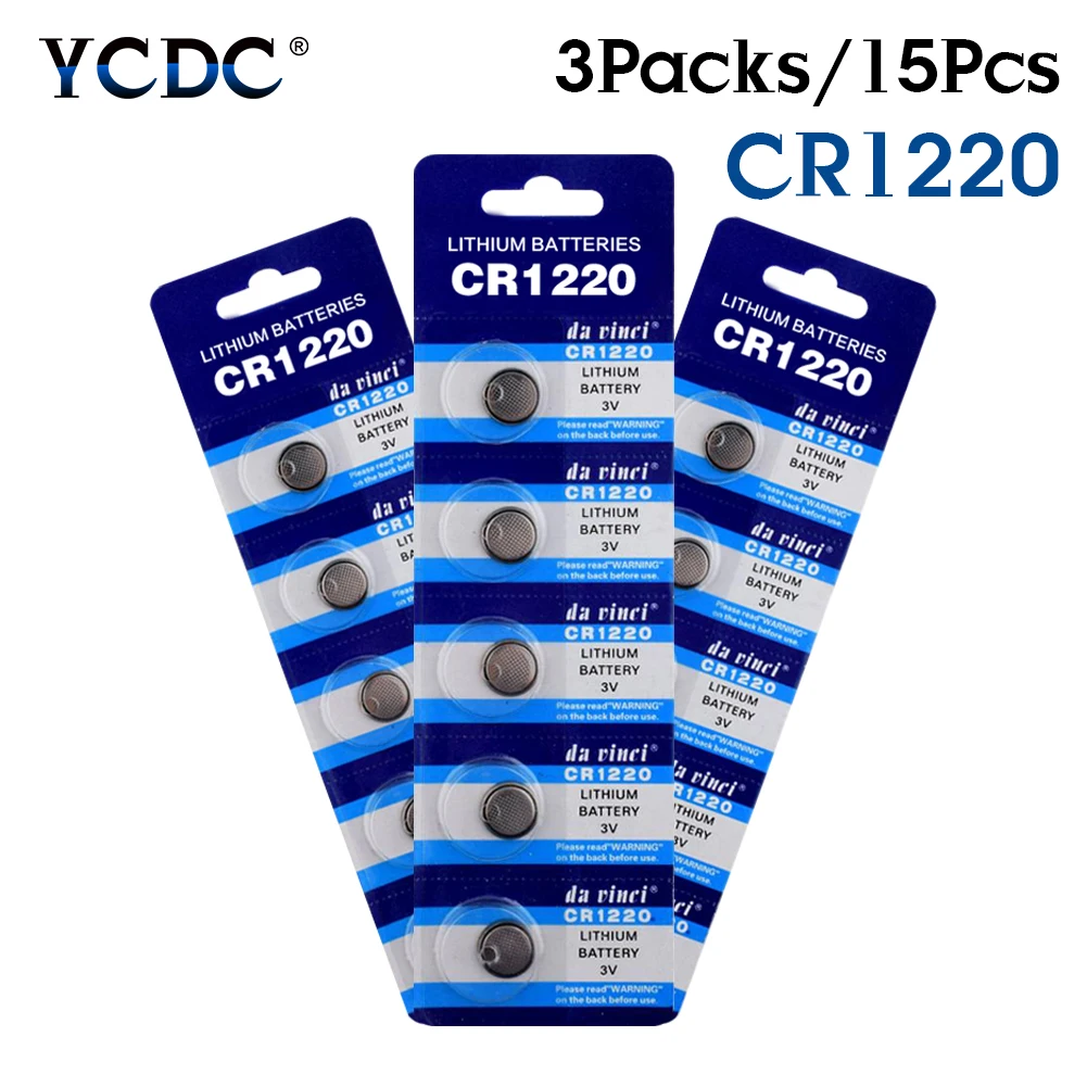 Литиевые Батарейки CR1220, 15 шт., батарейки для монет, 1,55 в, DL1220, BR1220, LM1220, CR 1220, электронные часы, игрушки, пульт дистанционного управления