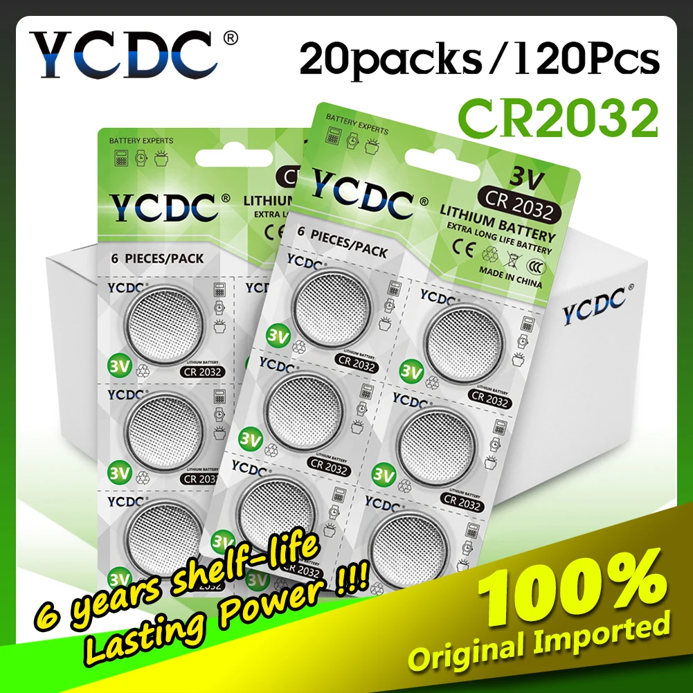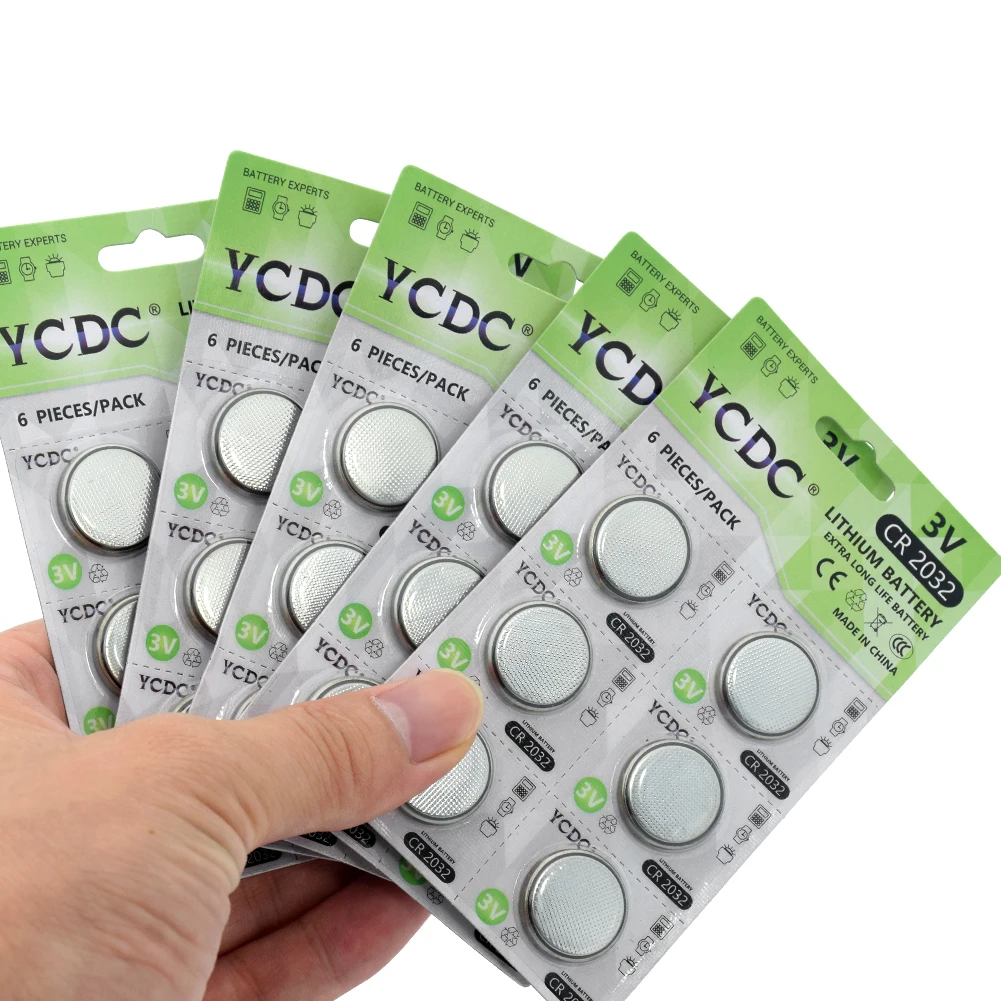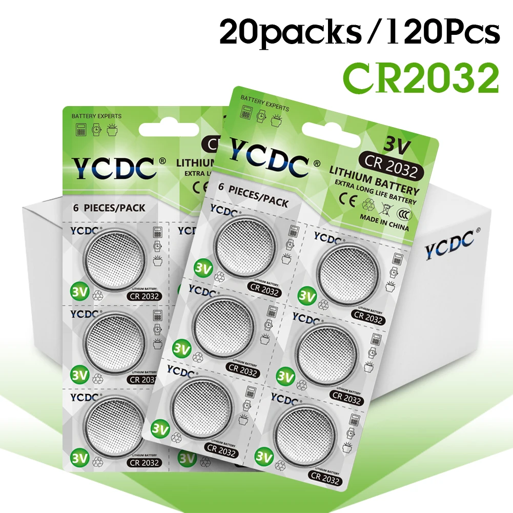 YCDC CR2032 120 шт. 3 в батарейка, Кнопочная батарейка, монетная батарейка cr 2032 DL2032 KCR2032 ECR2032, литиевые батареи для часов, часов, игрушек