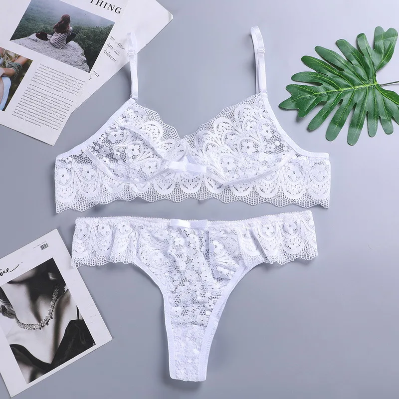 Комплект женского кружевного прозрачного нижнего белья с бюстгальте...