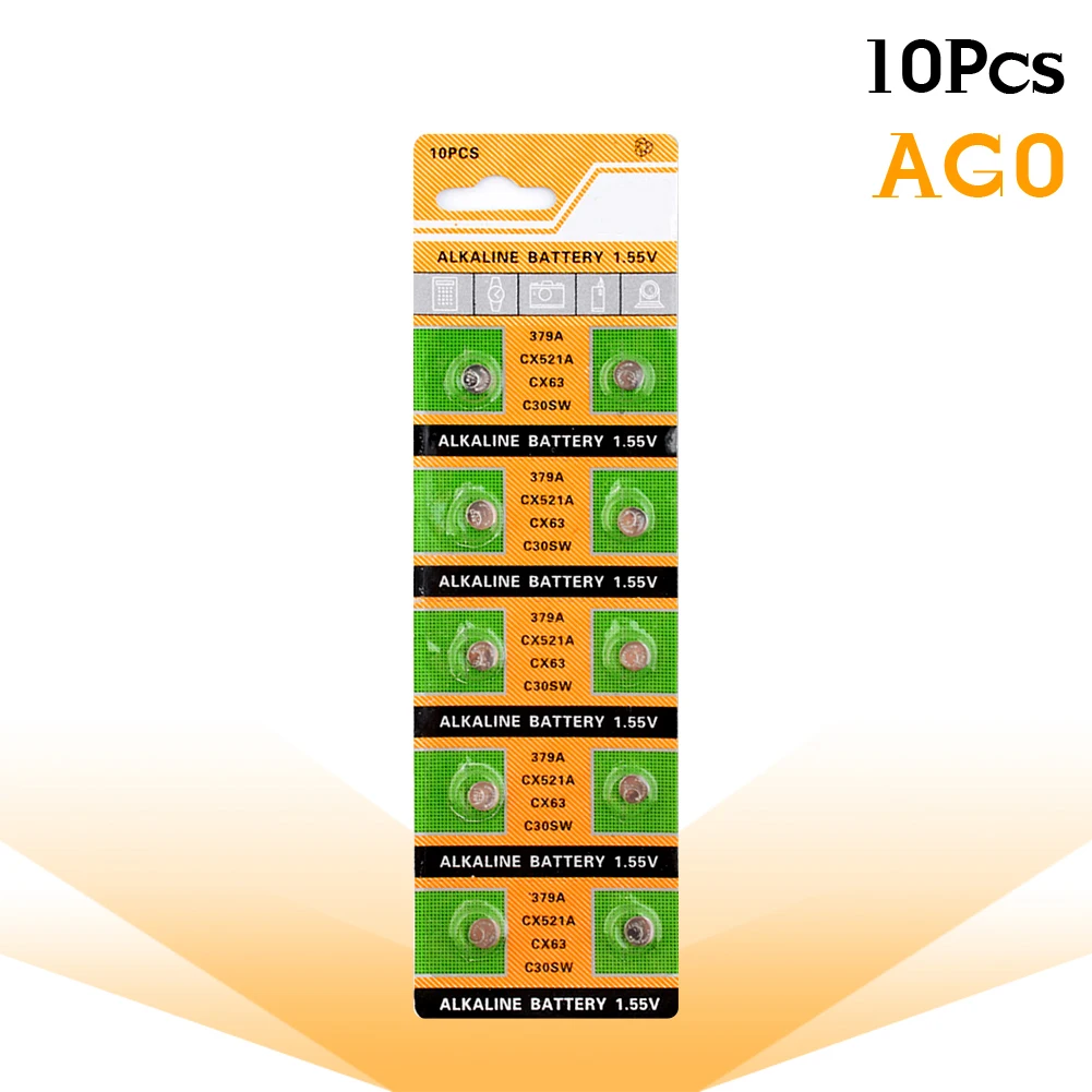 10x AG0 щелочные батареи для монет 379 SR521SW D379 V379 V520 280-59 GP379 SR63 AG0 618 JA LR521 часы Bateria