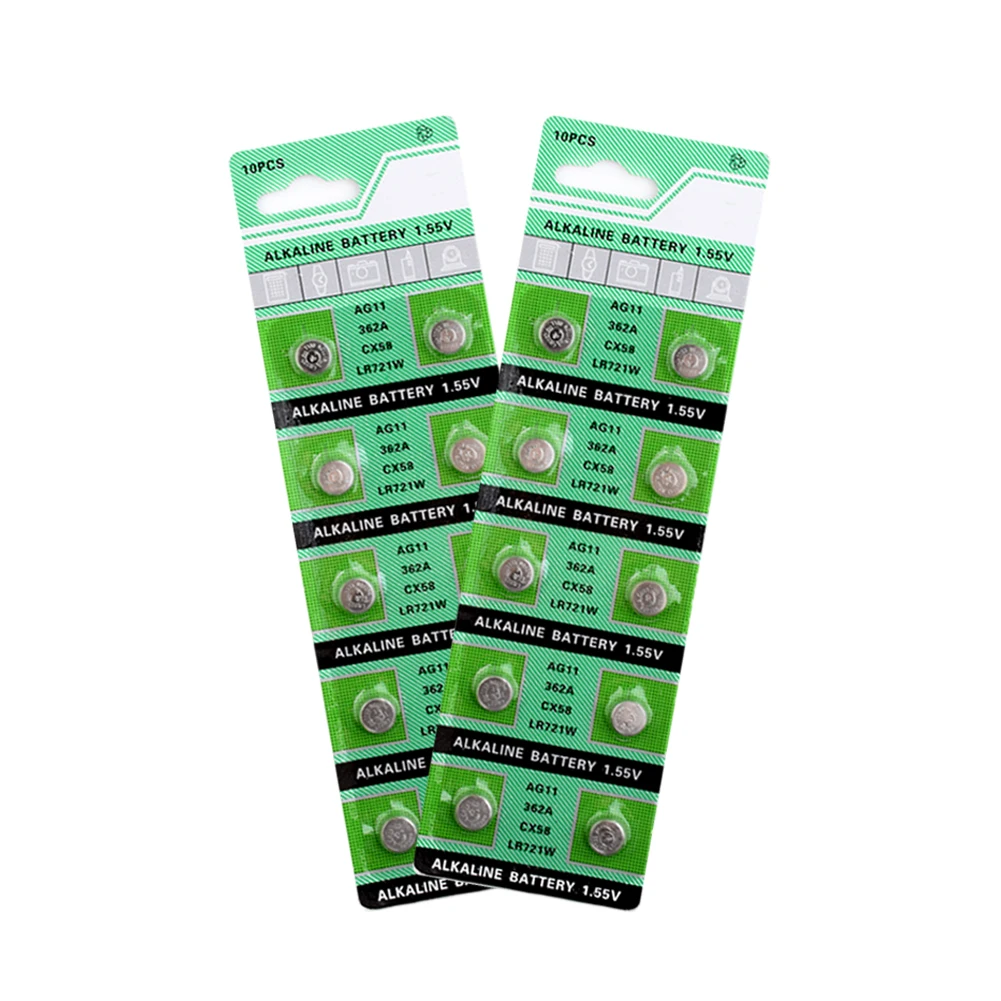 20 шт., кнопочные щелочные батарейки AG11 1,55 в, 19, 162, 361, 362, 423, 532, 601, 280-29, 362-1 Вт, AG11, D361, D362, G11, GP62, LR721