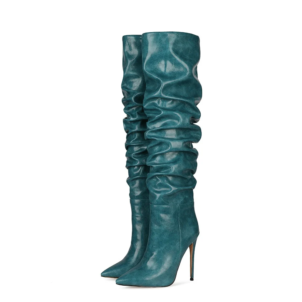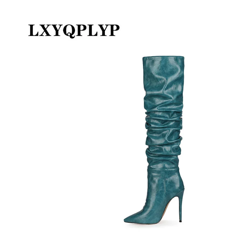 Сапоги до колена с острым носком в европейском и американском стиле...