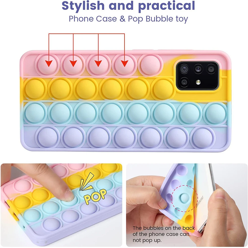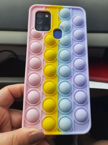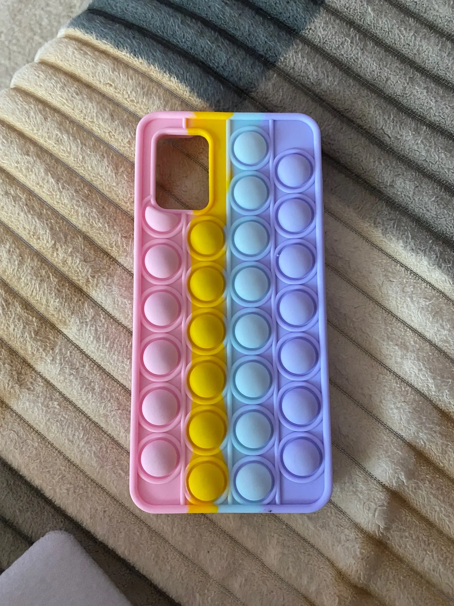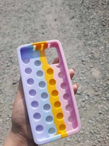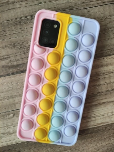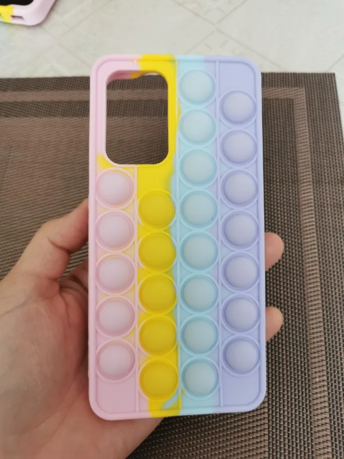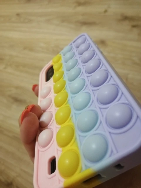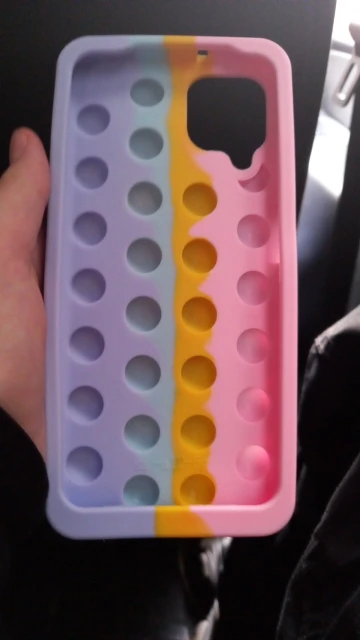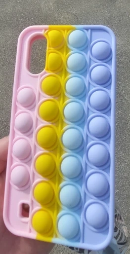 на телефоне сидит не плотно, но ребёнку всё равно понравилось. если чехол на телефоне, то пупырки не фиксируются в нажатом состоянии
