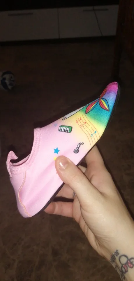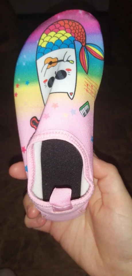 Отличные тапочки, ребёнок спокойно ходил по камушкам и по горячем песку. Подошва плотная, ещё дополнительная стелька внутри