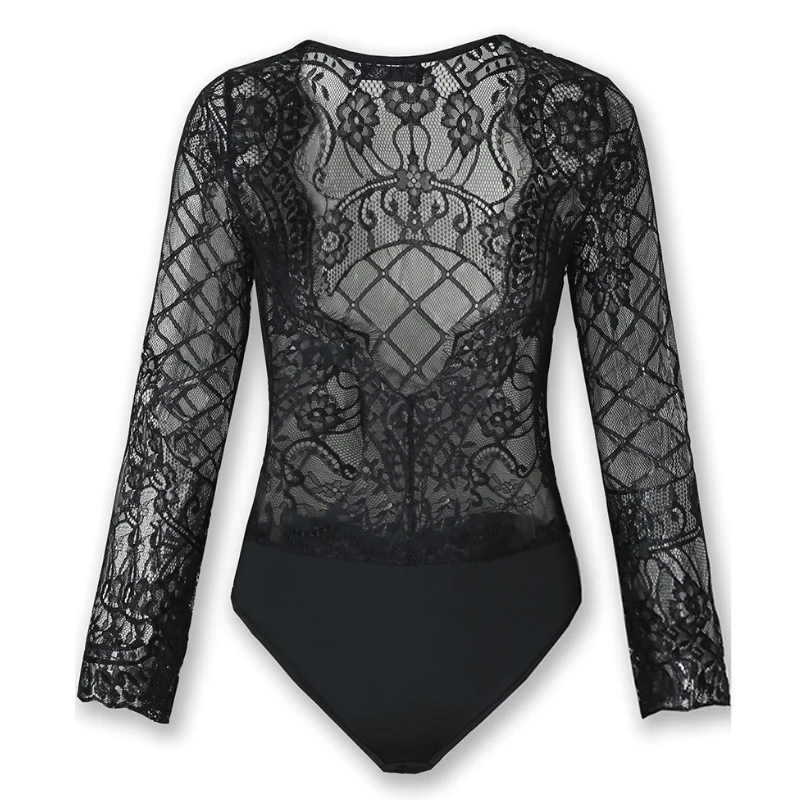 Брендовые новые женские сексуальные кружевные боди с длинным рукаво...