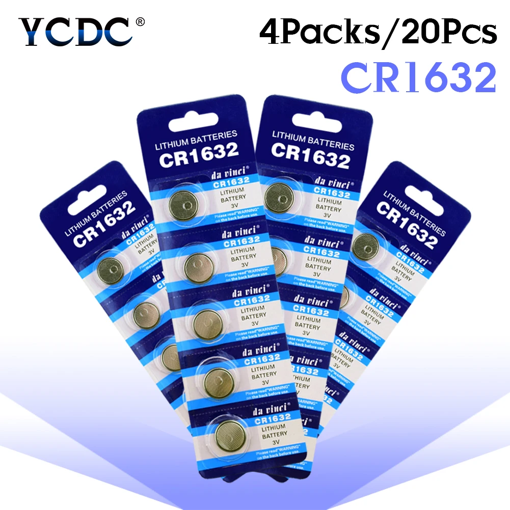 20 шт. = 4 карты CR1632 3 В батареи кнопочного типа CR1632 CR 1632 ECR1632 DL1632 KCR1632 LM1632 KL1632 литиевая батарея