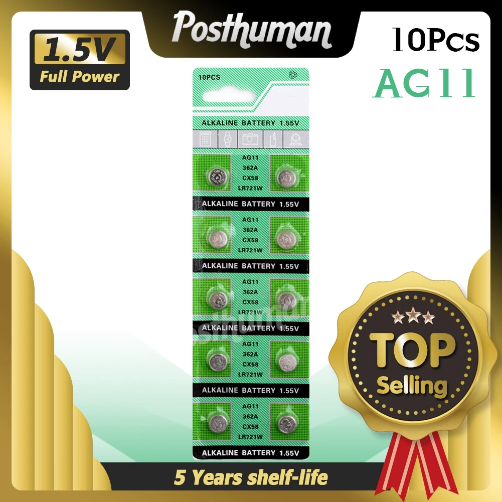 10 шт., кнопочные батарейки AG11, 1,55 в, LR47 SR721SW LR721 V362