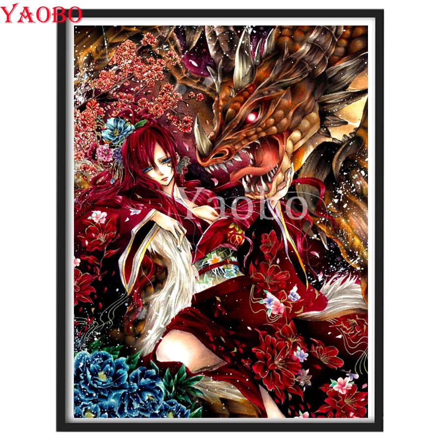 Аниме девушка и дракон 5D diy Алмазная картина, полная, квадратная, круглая Алмазная вышивка мозаика головоломка Алмазная стежка украшение для дома