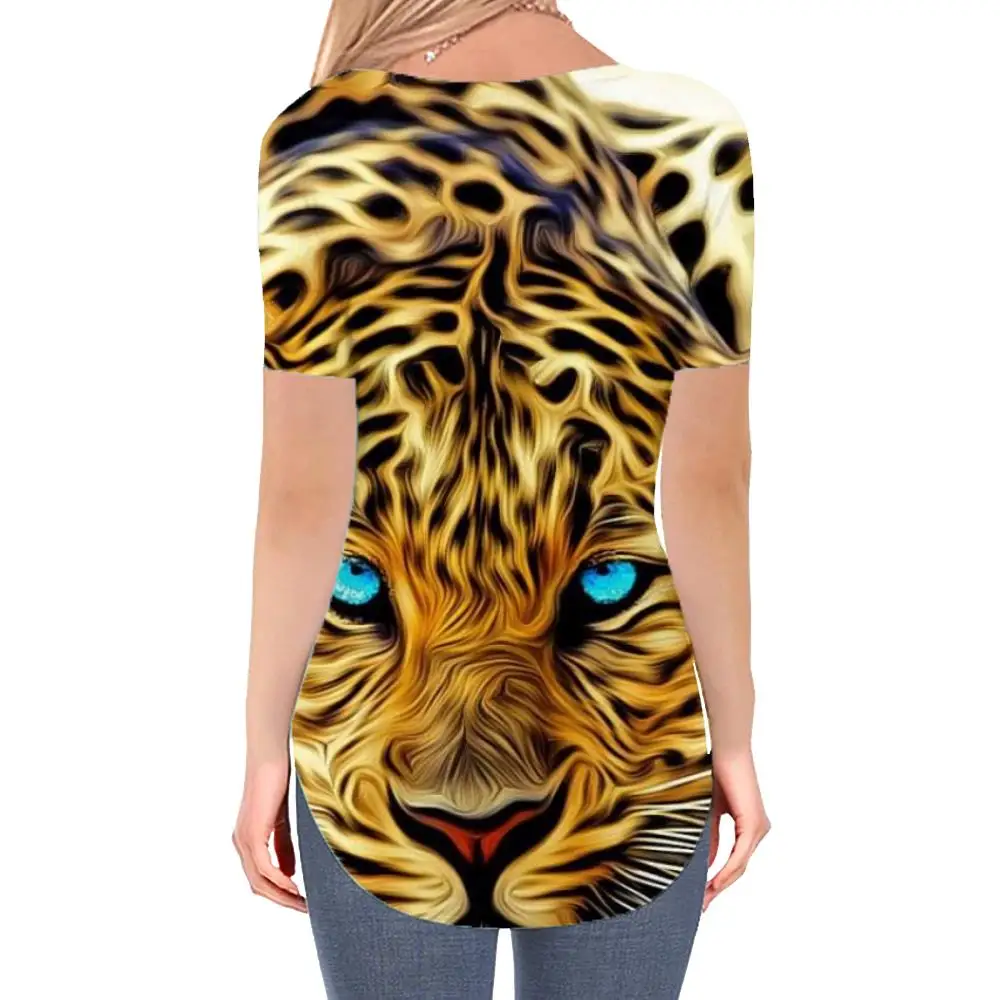 Женская футболка с леопардовым принтом KYKU, леопардовая футболка с V-образным вырезом, в стиле хип-хоп