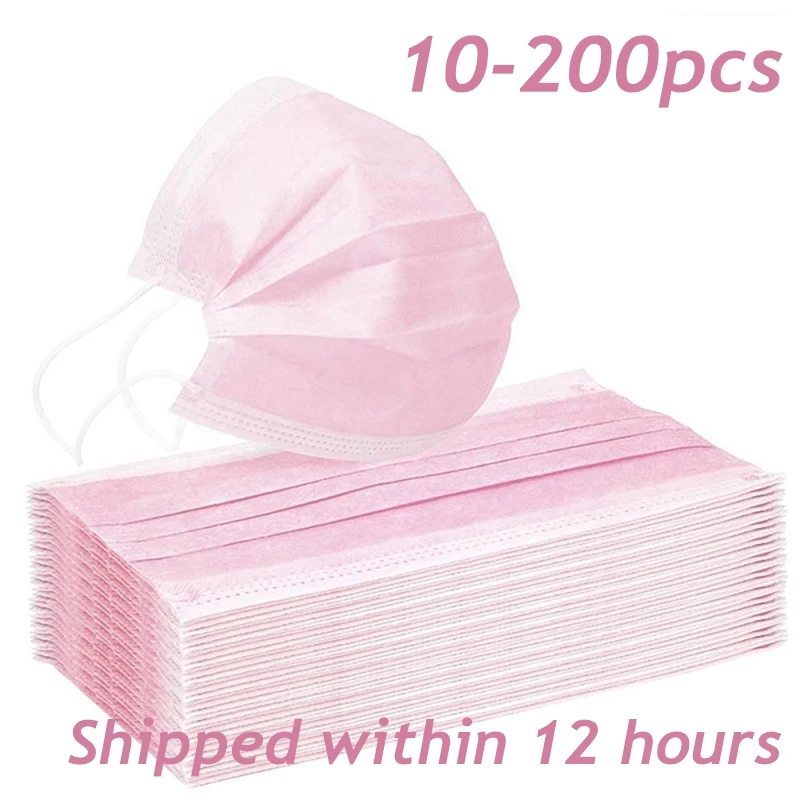 Одноразовая медицинская маска, розовая хирургическая маска для лица, 3-слойная маска с фильтром, Нетканая маска против пыли с заушными петлями, маска для взрослых 10-200 шт.