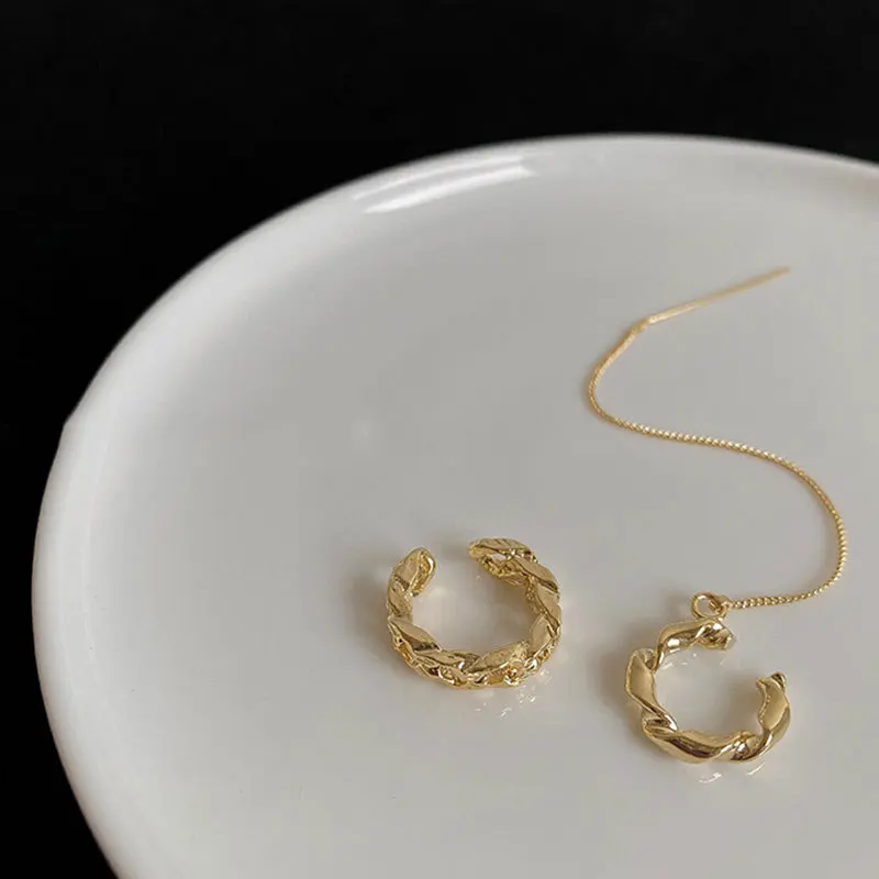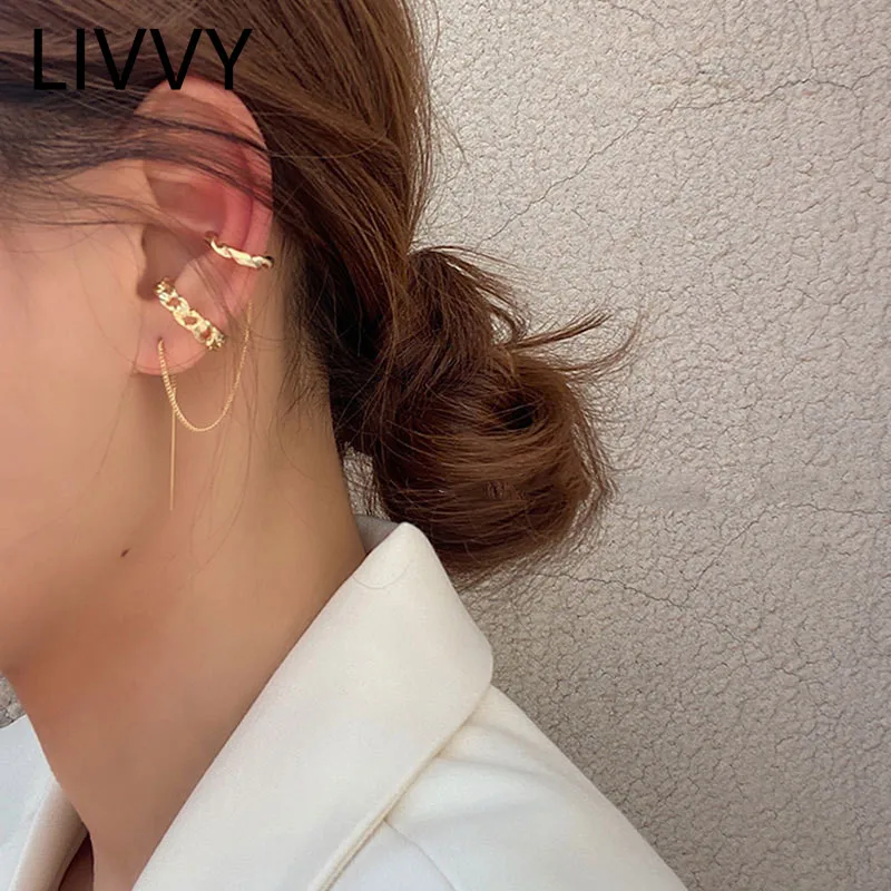 Модная Геометрическая цепочка LIVVY, витая Цепочка с кисточками, асимметричные клипсы для ушей, серьги для женщин, имитация пирсинга, ювелирные изделия, подарки
