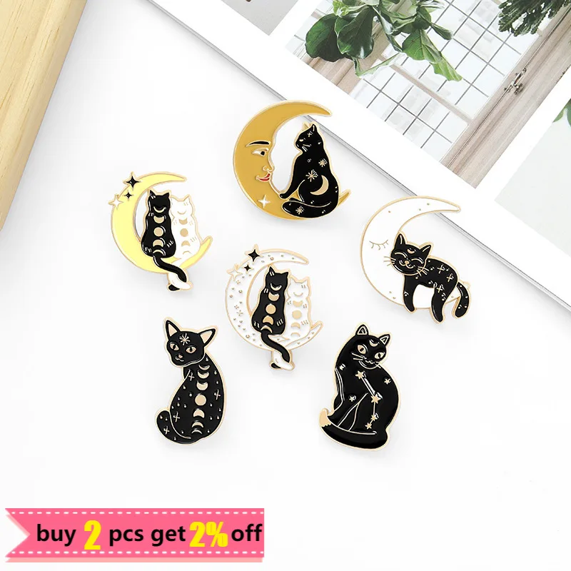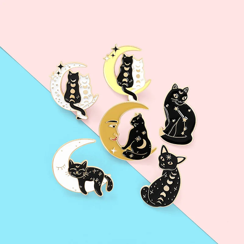 1 шт. эмалевые заколки с кошками на заказ Лунная фаза волшебник бро...