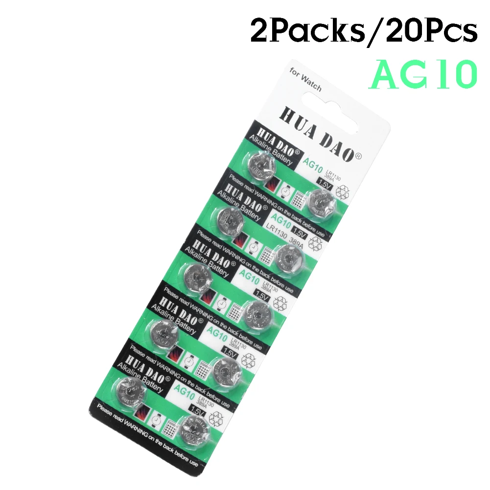 20 шт., кнопочные щелочные батарейки AG10 1,55 в, 189 389A 390A D189 G10 G10A SR1130 GP89A KA54 L1131 LR1130 LR54 RW89