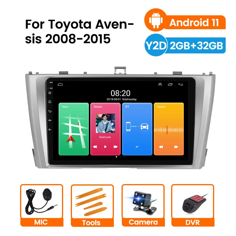 Автомагнитола на Android 11, мультимедийный видеоплеер для Toyota Avensis 2008, 2009, 2010, 2011, 2012, 2013, 2014, 2015, навигация GPS, 2 Гб + 32 ГБ