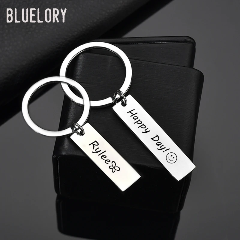 Bluelory, изготовленный на заказ, квадратный брелок из нержавеющей стали, гравировка имени, дата, предложение персонализированный брелок