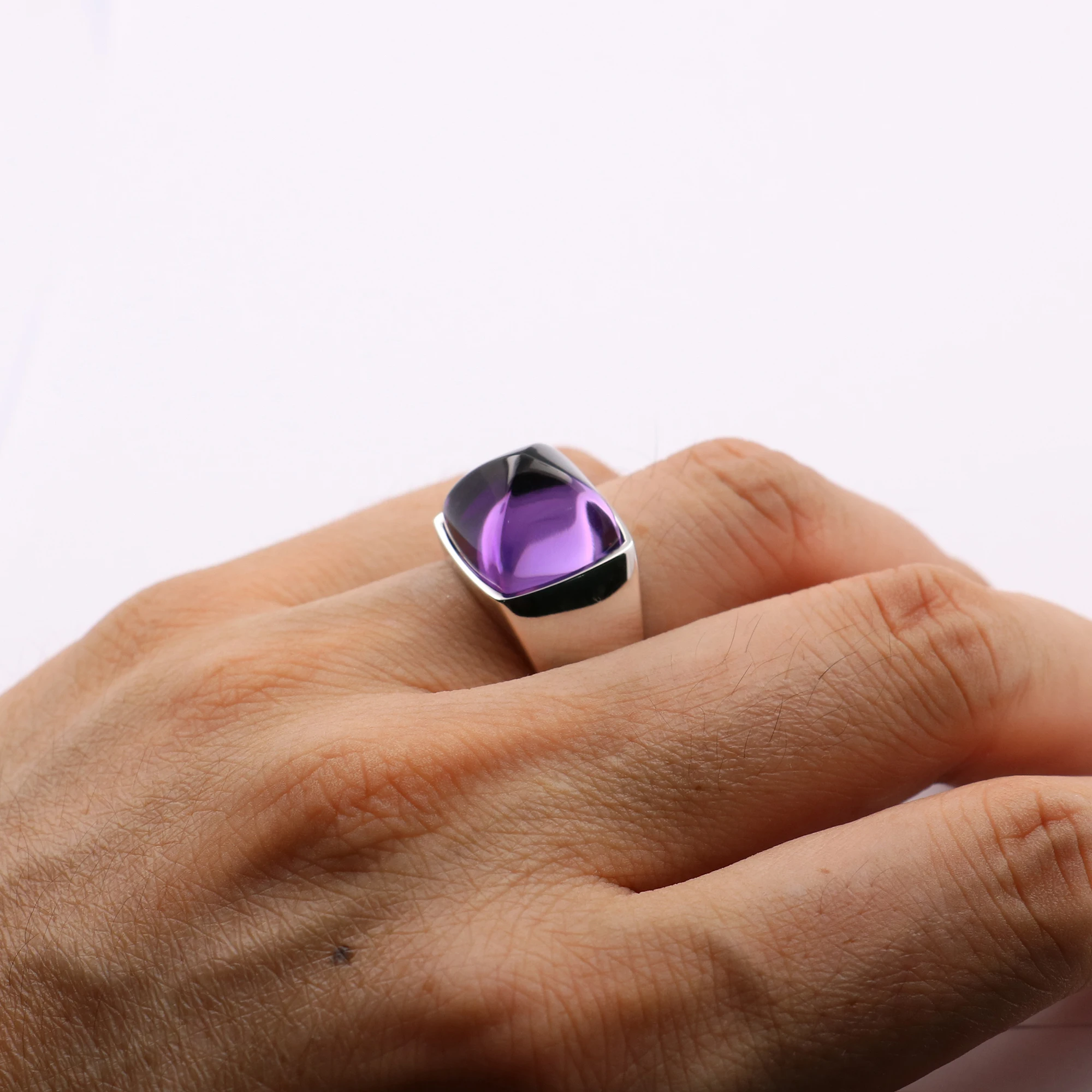 Изделие изготовлено из настоящего 925 пробы серебра, Ширина кольца около 15 мм, ширина дна около 7 мм. Размер аметиста составляет около 14 мм на 14 мм.PS: этот товар может быть выгравирован с вашим брендом или логотипом на внутренней или внешней стороне кольца.
