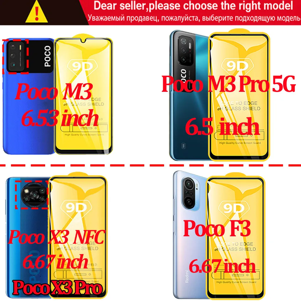 Закаленное стекло 9D для Xiaomi Poco X3 Pro NFC F3 M3 M4 Pro, защит...