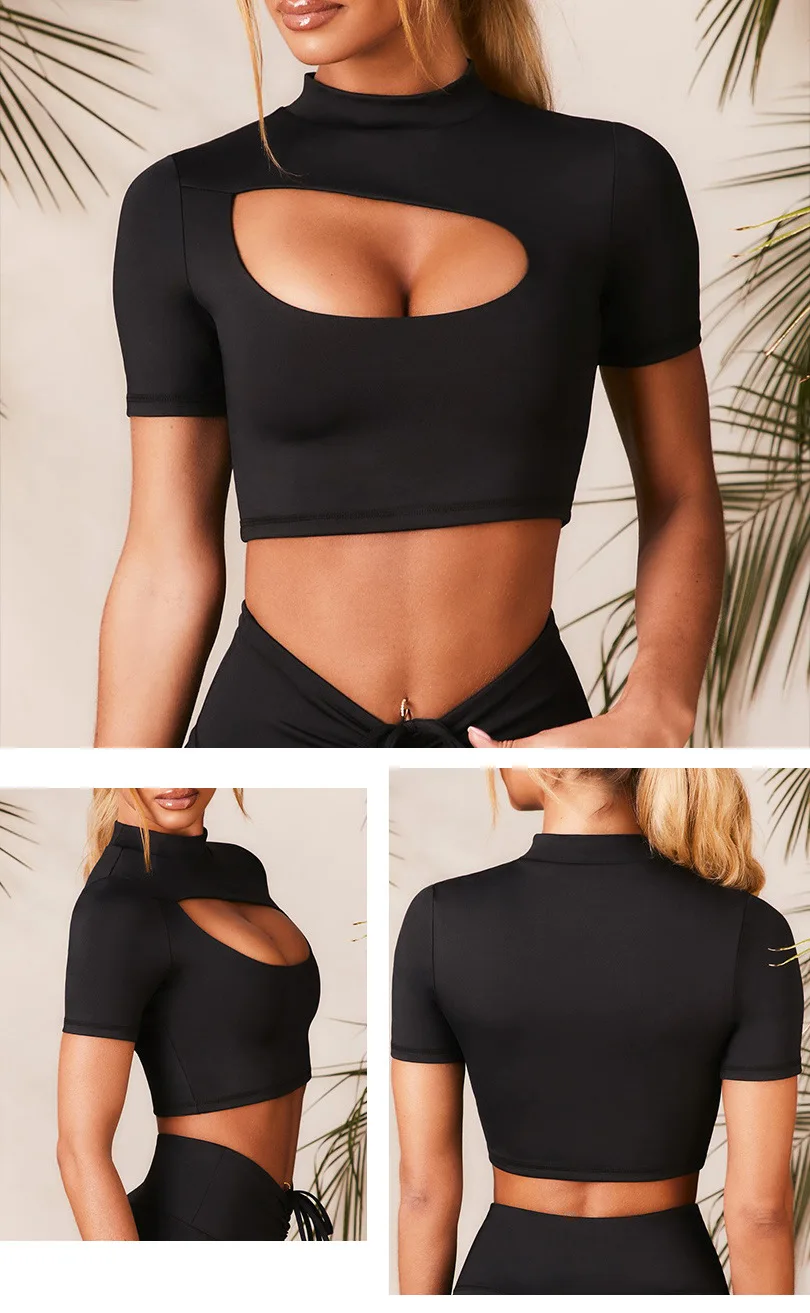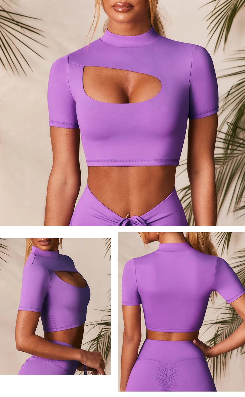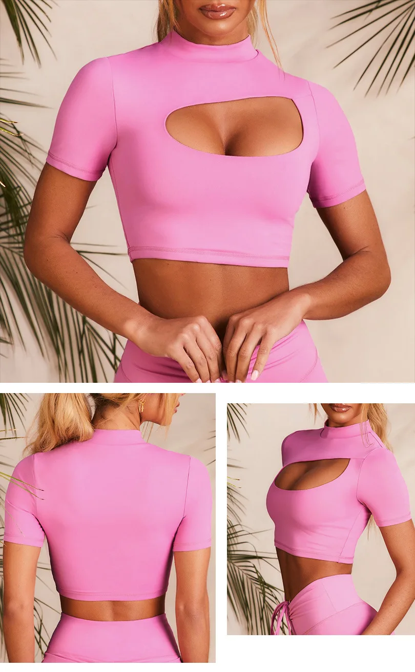 Новая бесшовная рубашка для йоги, женский укороченный топ с коротки...