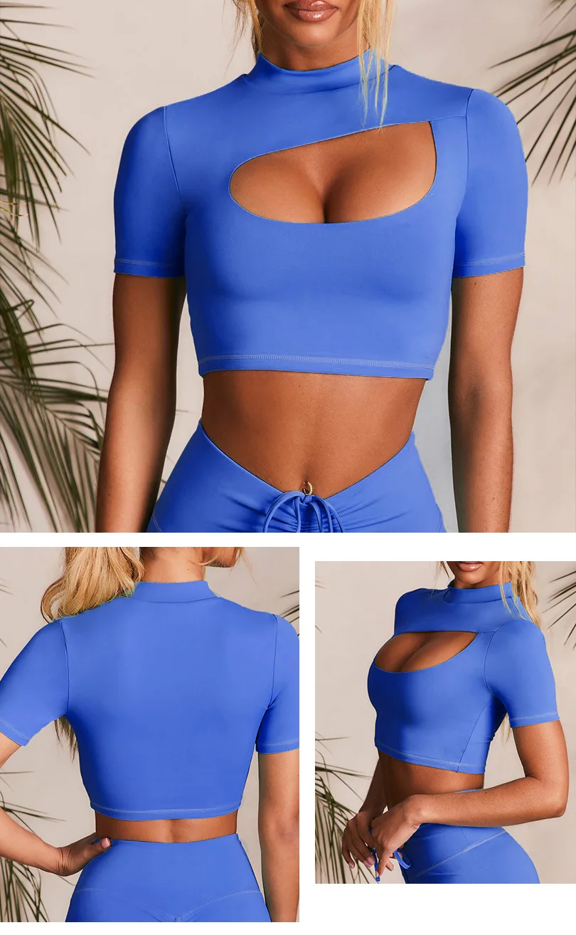 Женские Бесшовные комплекты для йоги с коротким рукавом, Спортивные укороченные топы, обтягивающие штаны для фитнеса, тренажерного зала, тренировок, спортивная одежда, новинка 2021