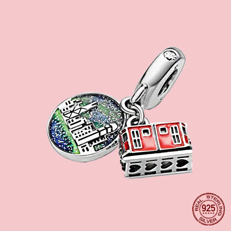 Кулон из серебра 925 пробы с подвеской в виде сверкающего дома, чемодана, автомобиля, дома, подходят к оригинальному браслету Pandora, ожерелье, Женские Ювелирные изделия