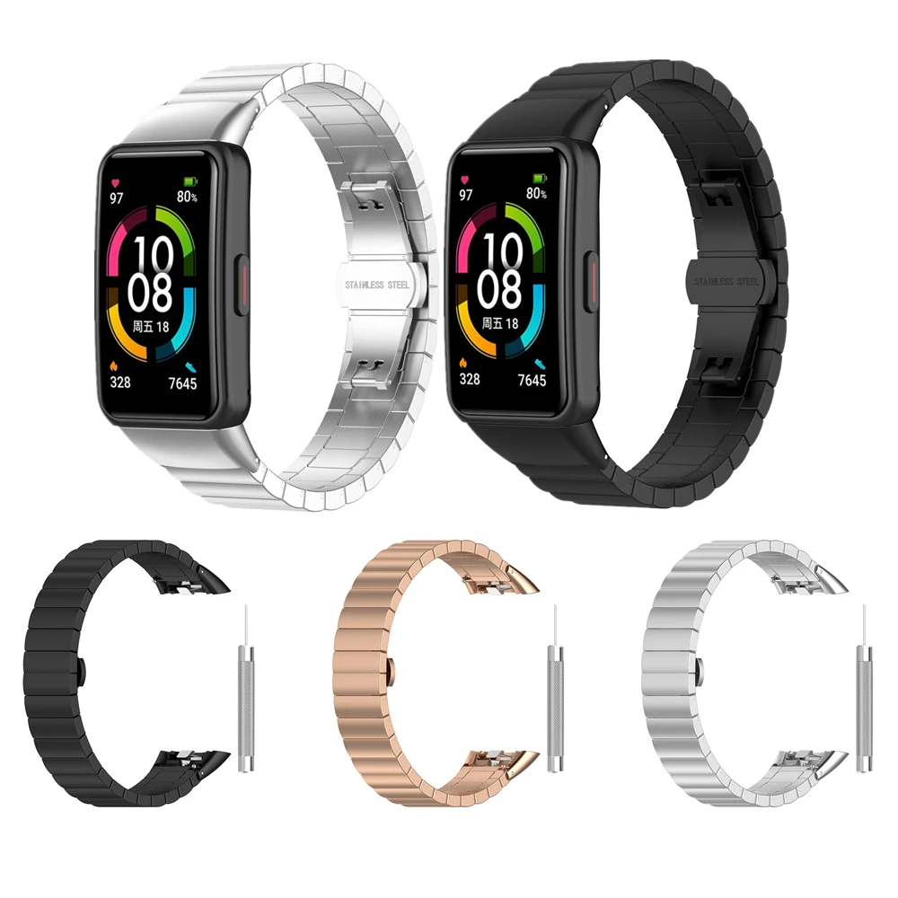 Ремешок из нержавеющей стали для наручных часов Huawei Band6 Honor ...
